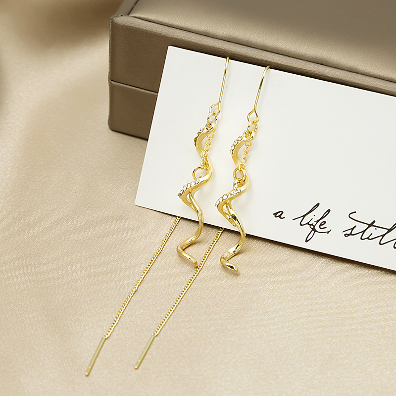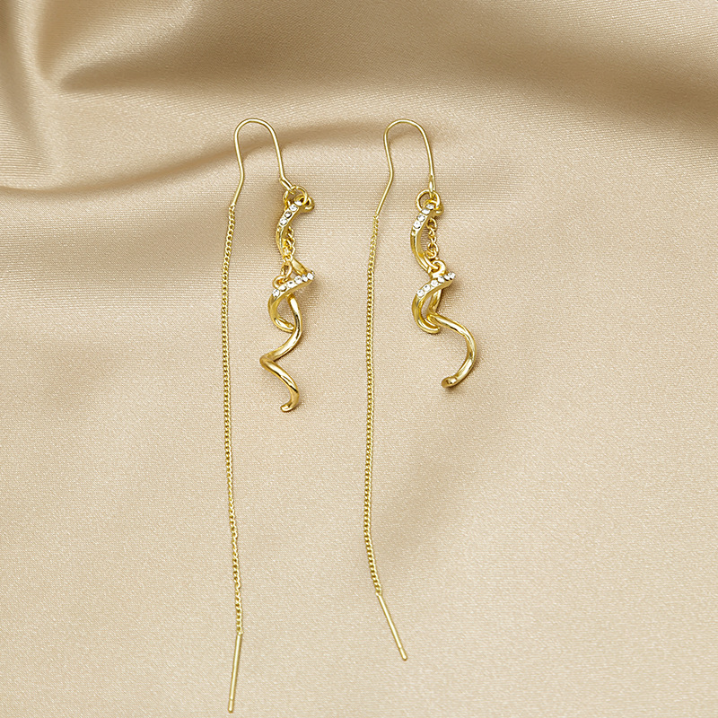 Чувство дизайна бриллиантами спираль кисточкой серьги, модные ювелирные изделия, все-матч длинные суперфеи изысканные серьги, индийские украшения