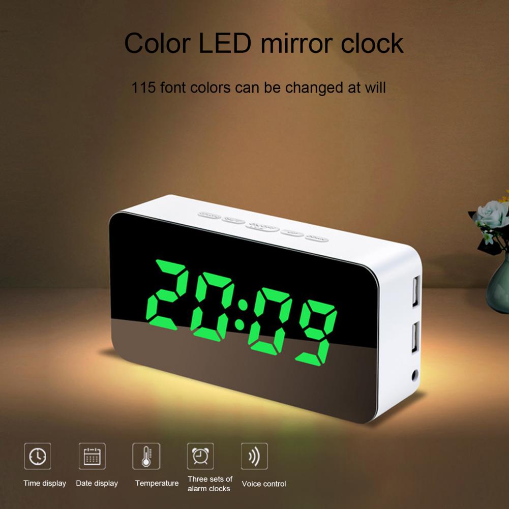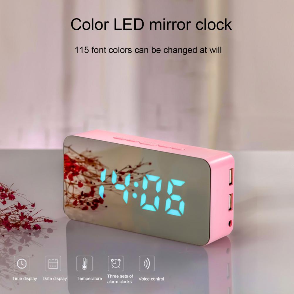Многофункциональные часы с зеркальной поверхностью с 2 usb-интерфейсами, цифровой светодиодный Будильник с кабелем, бытовые принадлежности