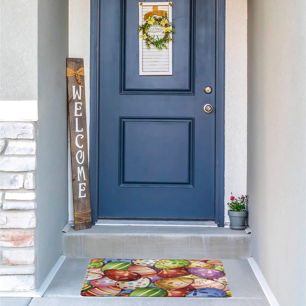 1. Пасха Добро пожаловать украшения дома двери-набор включает в себя 1 Добро пожаловать коврик. В этом апрельском праздничном стиле коврик идеально подходит для распространения веселой атмосферы весенних торжеств. Пусть шведский дварф кролик расправит праздничное настроение для вашей семьи.
