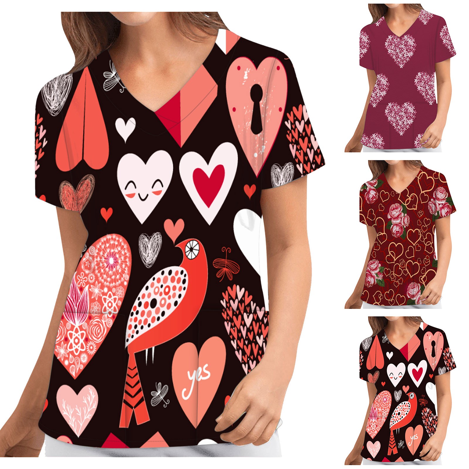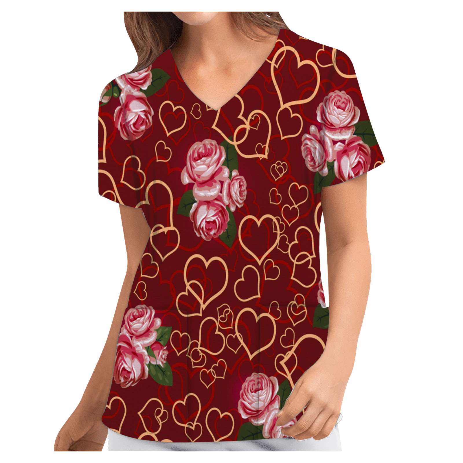 Женский Повседневный Топ с v-образным вырезом и короткими рукавами для медсестер