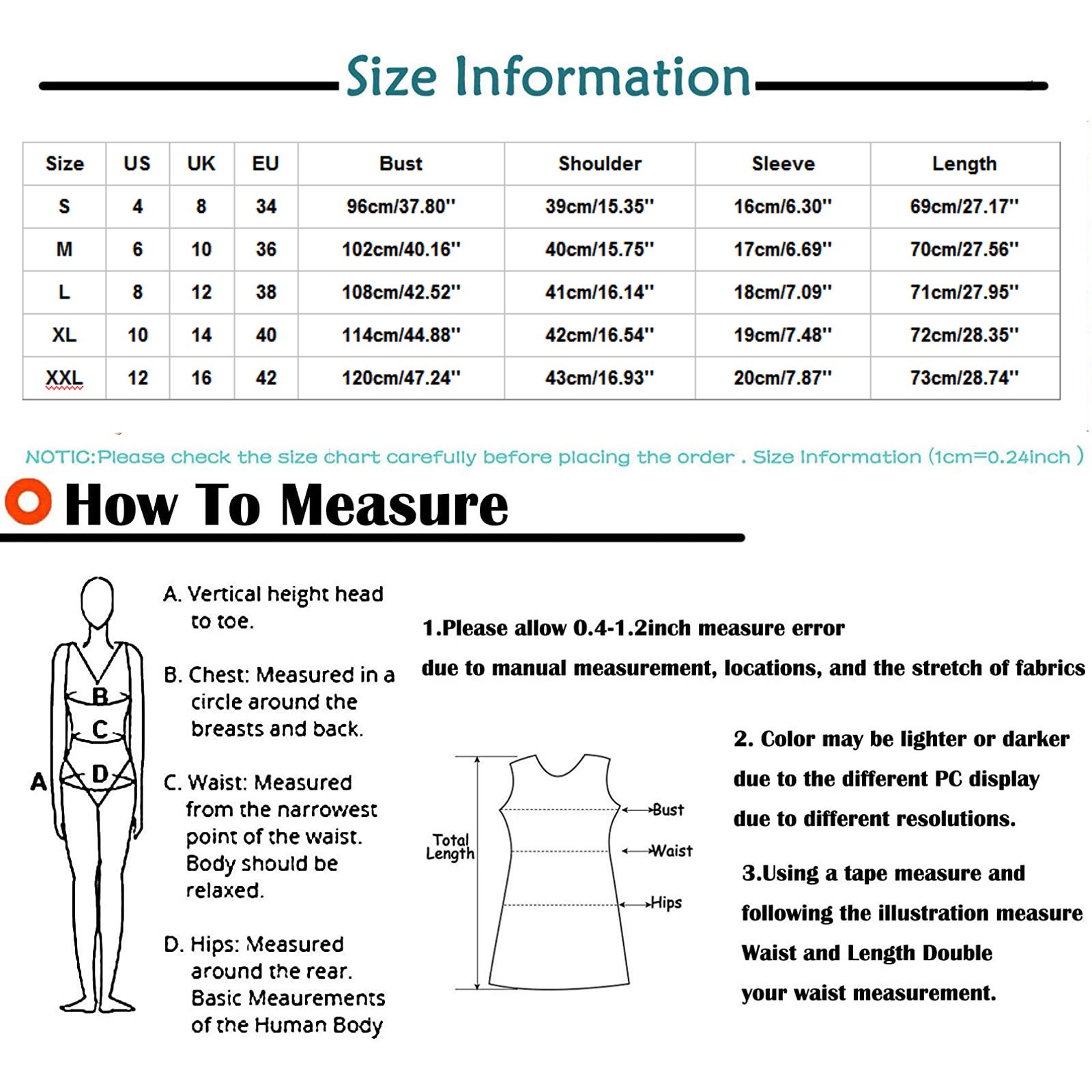 Size | US | UK | EU | Bust | Shoulder | Sleeve | Length |
