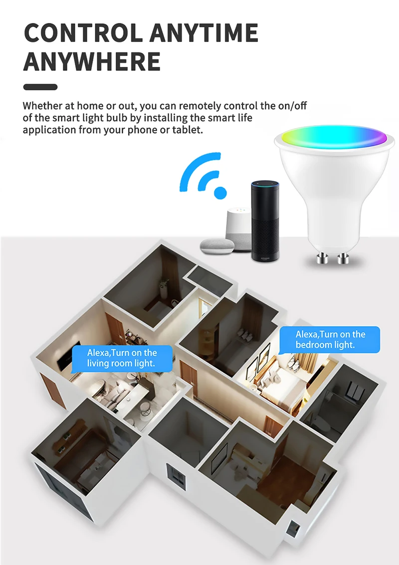 1. Устройство напрямую подключено к Wi-Fi, и мобильный телефон app удаленно контролирует светильник дома в любое время;