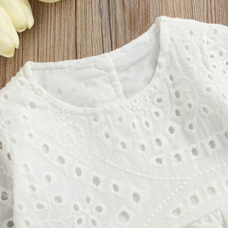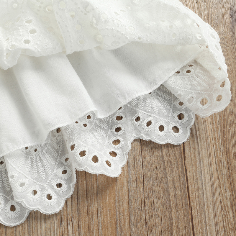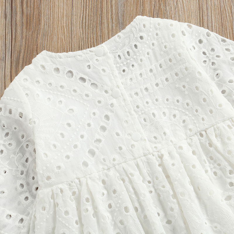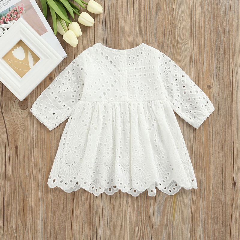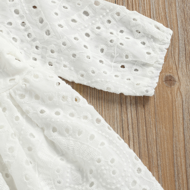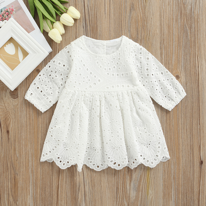 Детское платье; Однотонное кружевное платье с цветочным рисунком и круглым вырезом; Платье с длинными рукавами