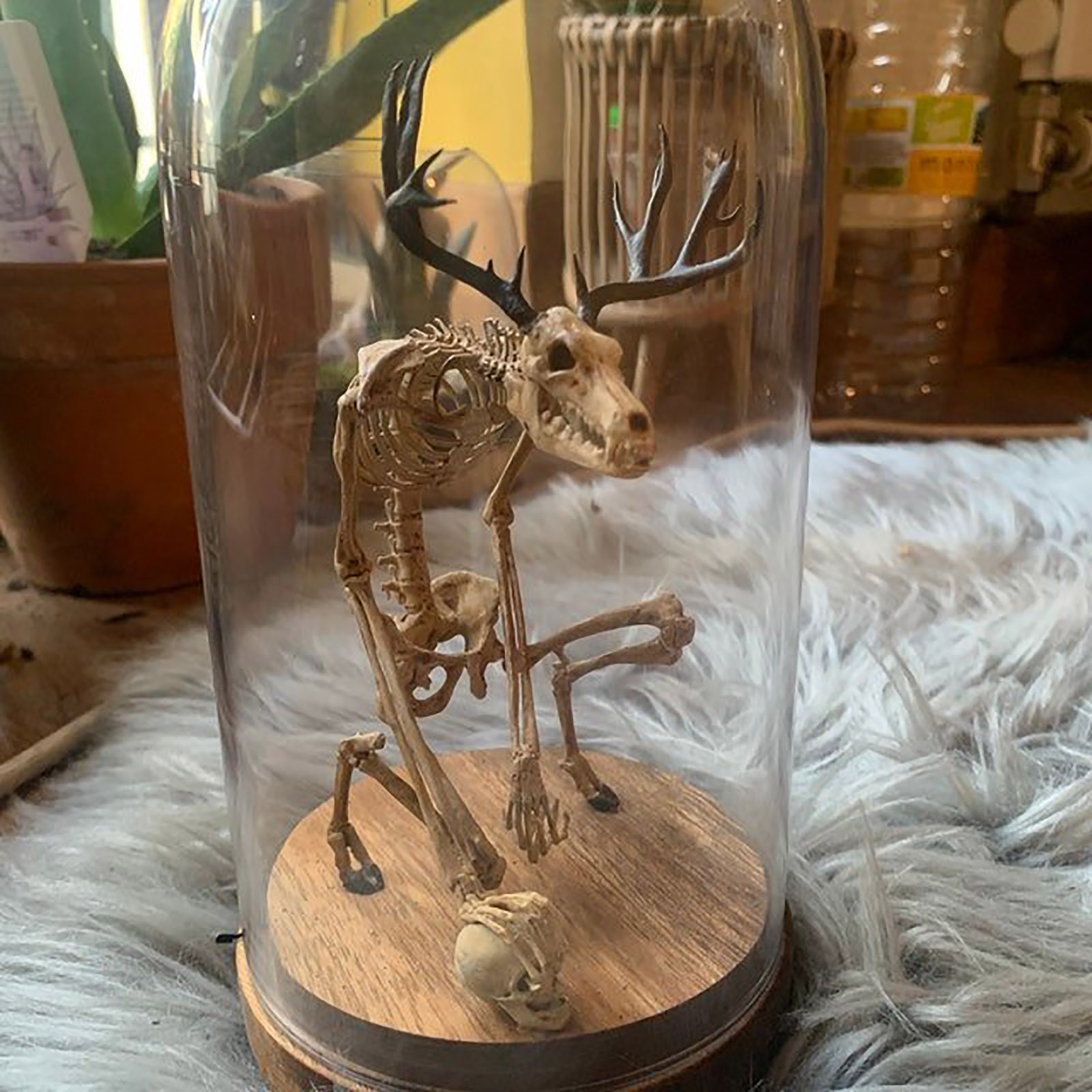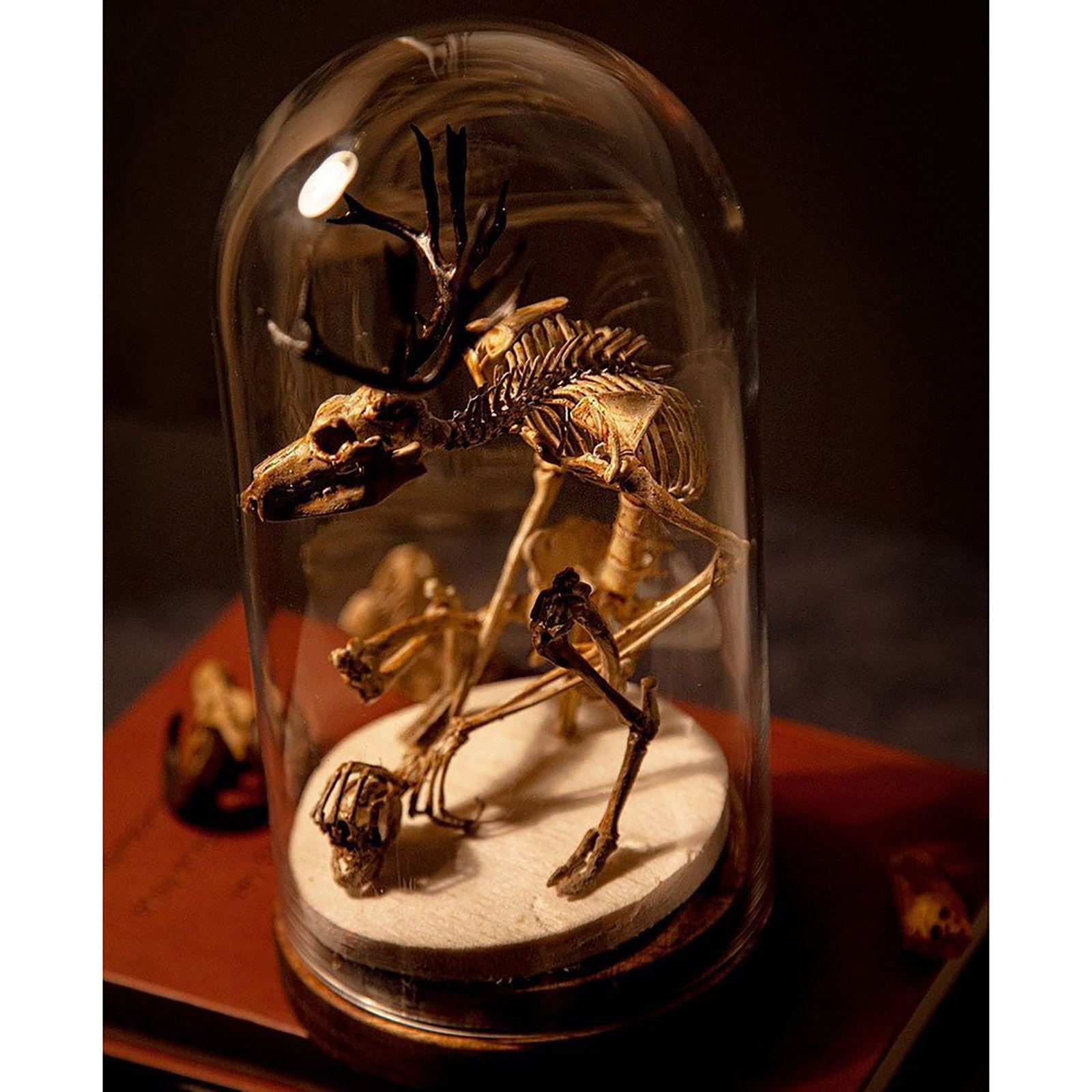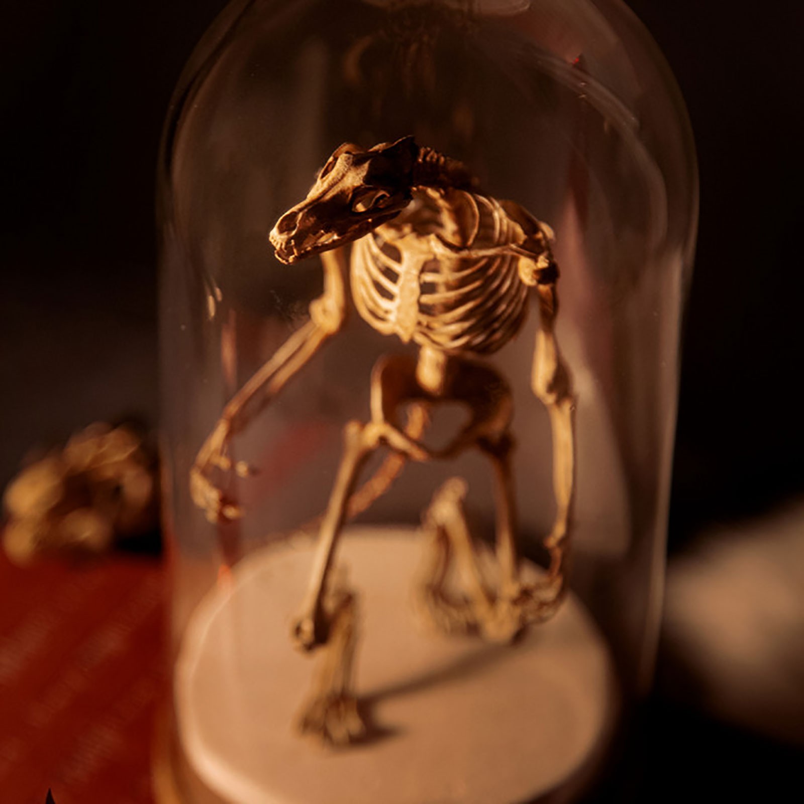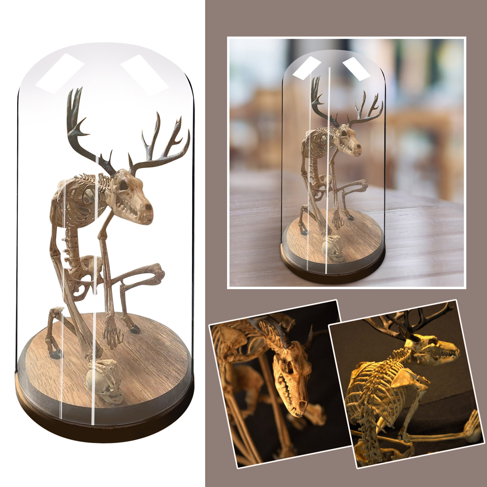 Wendigo Skeleton Curiosity Cabinet Mysterious Skeleton Fossil Simulation Skull Model Glass Cover Crafts Desk Figurine Home Decor