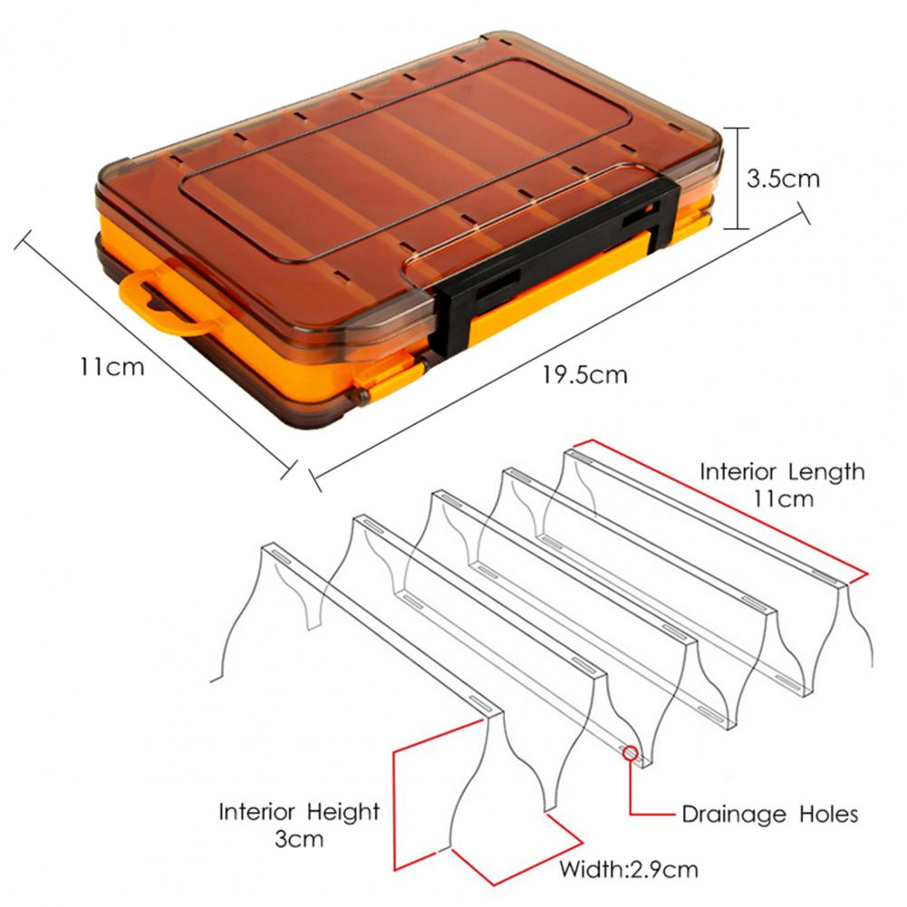 Конструкция ручки позволяет легко носить с собой на улице. Двухсторонний дизайн обеспечивает большую емкость для хранения рыболовных приманок.