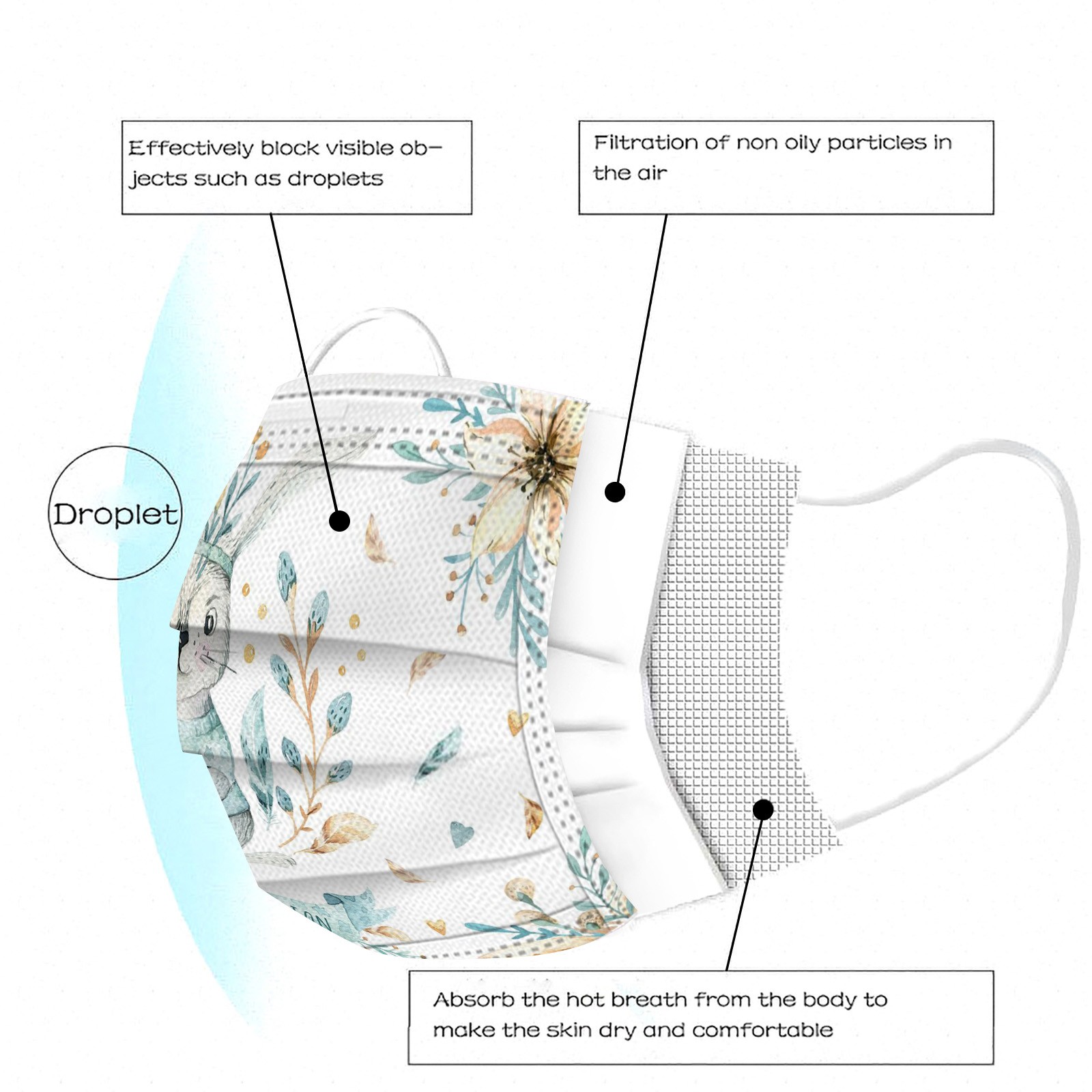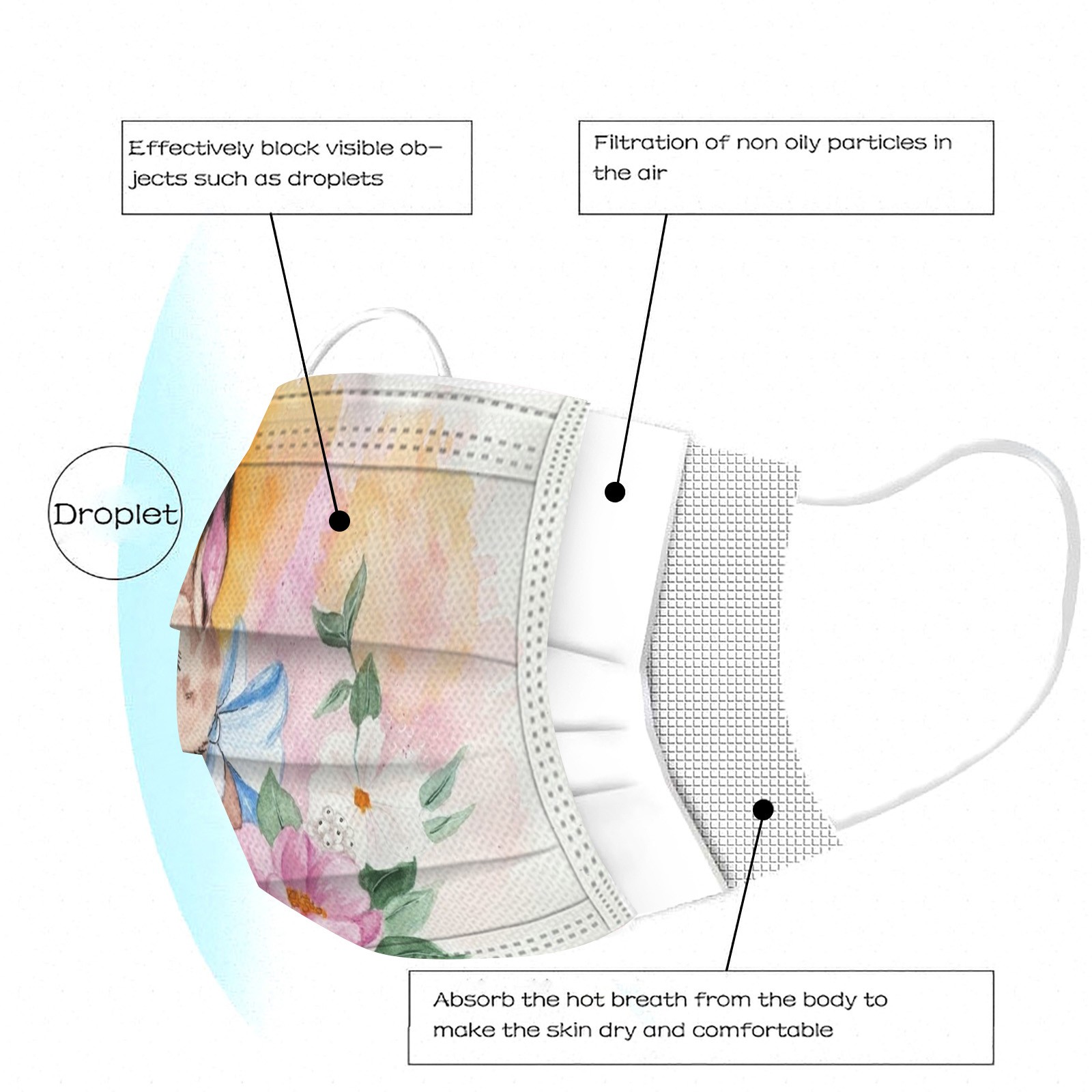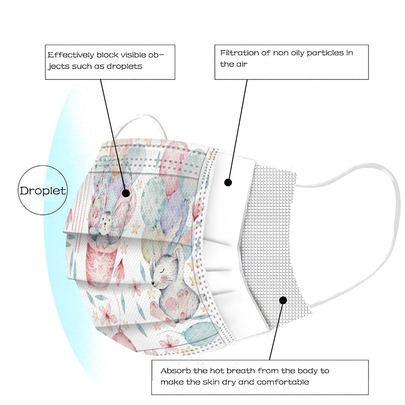 2. Дышащие материалы и милые узоры делают его практичным и модным. Специальный 1 слой спанлейс ткани + изготовленный аэродинамическим способом по технологии слой + слой из нетканого материала, конструкция обеспечивает защиту,Выхлопная труба автомобиля, пыльца и т. Д.