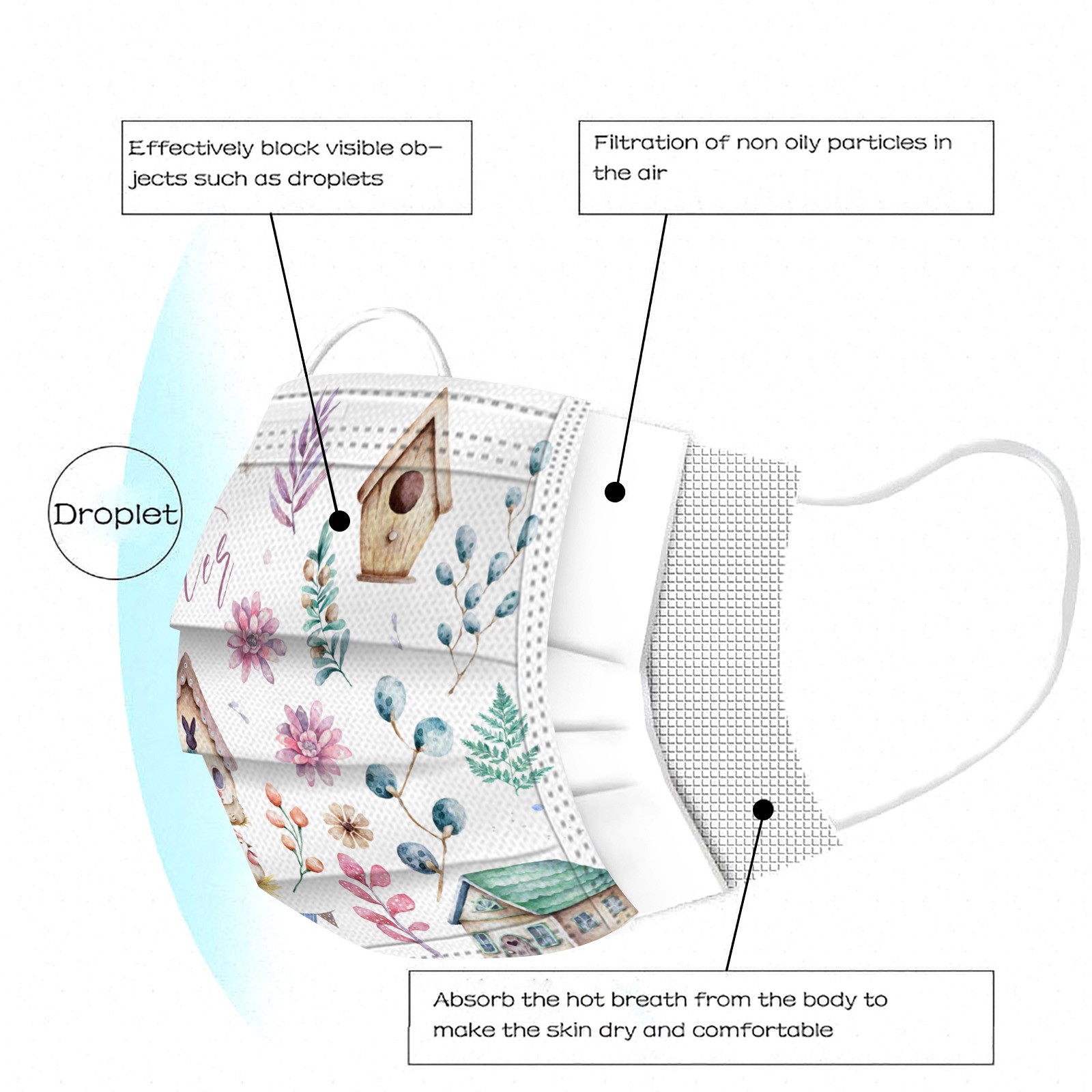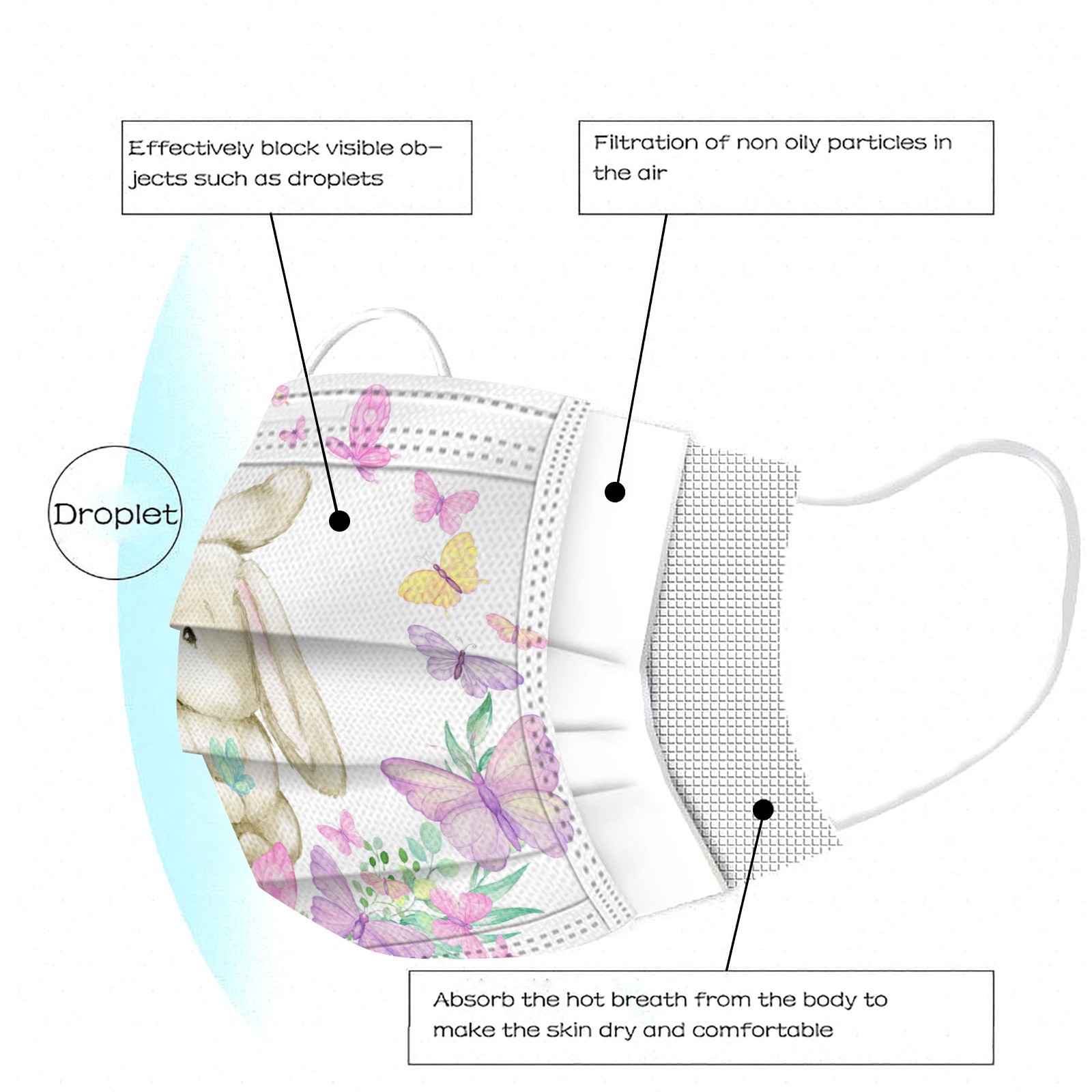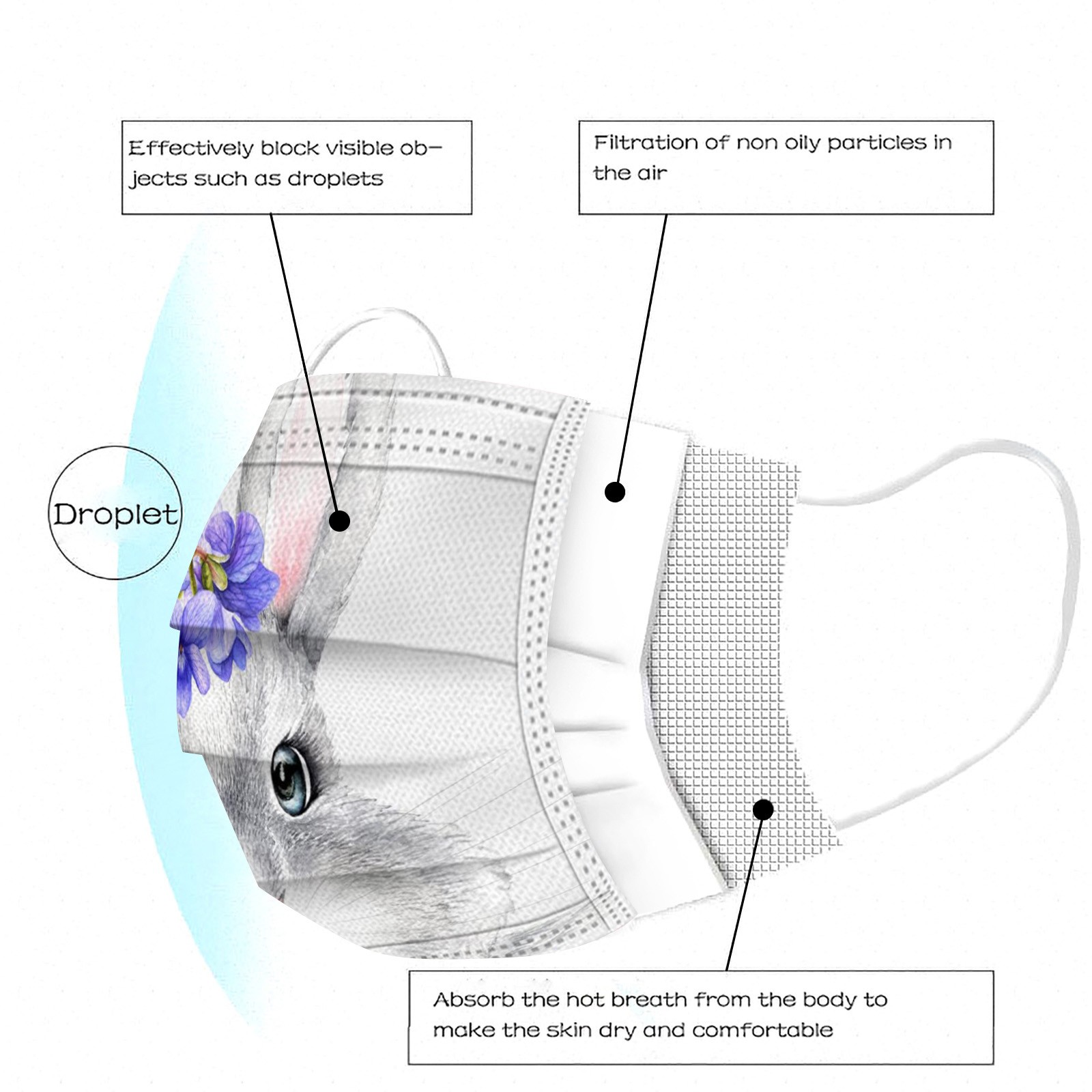 2. Дышащие материалы и милые узоры делают его практичным и модным. Специальный 1 слой спанлейс ткани + изготовленный аэродинамическим способом по технологии слой + слой из нетканого материала, конструкция обеспечивает защиту,Выхлопная труба автомобиля, пыльца и т. Д.