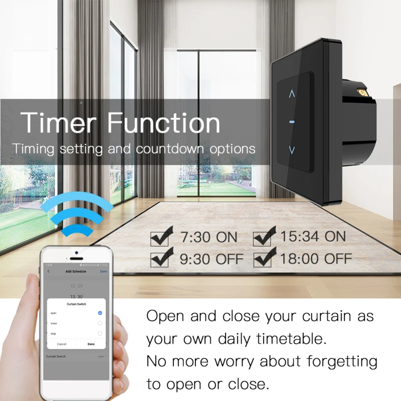 1.New arrival with extremely modern soft touch design for controlling house curtains in a much easier way;Transform your home with easy-to-use smart technology; this device makes it simple to control smart motorized curtains and roller blinds around your home; please note that the curtain motor is not included in this package and it must be purchased separately.