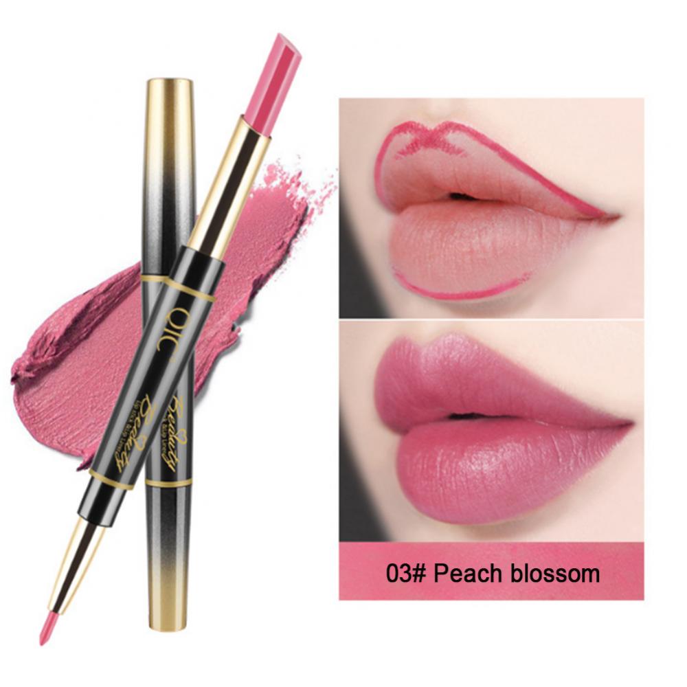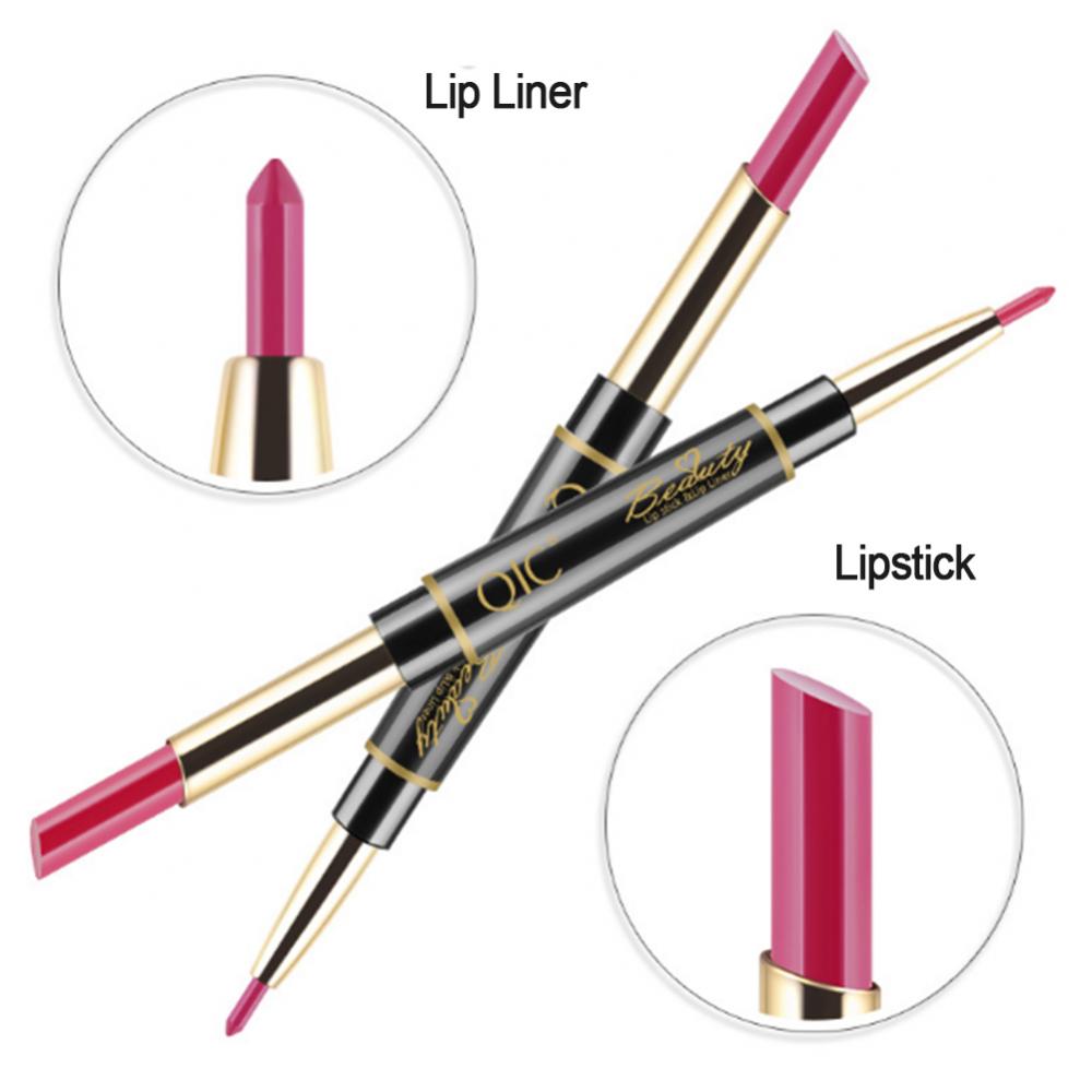 Дизайн с 2 головками, одна сторона-губная помада, а другая-подводка для губ, которая может очертить четкий контур губ и очаровательная губная косметика.