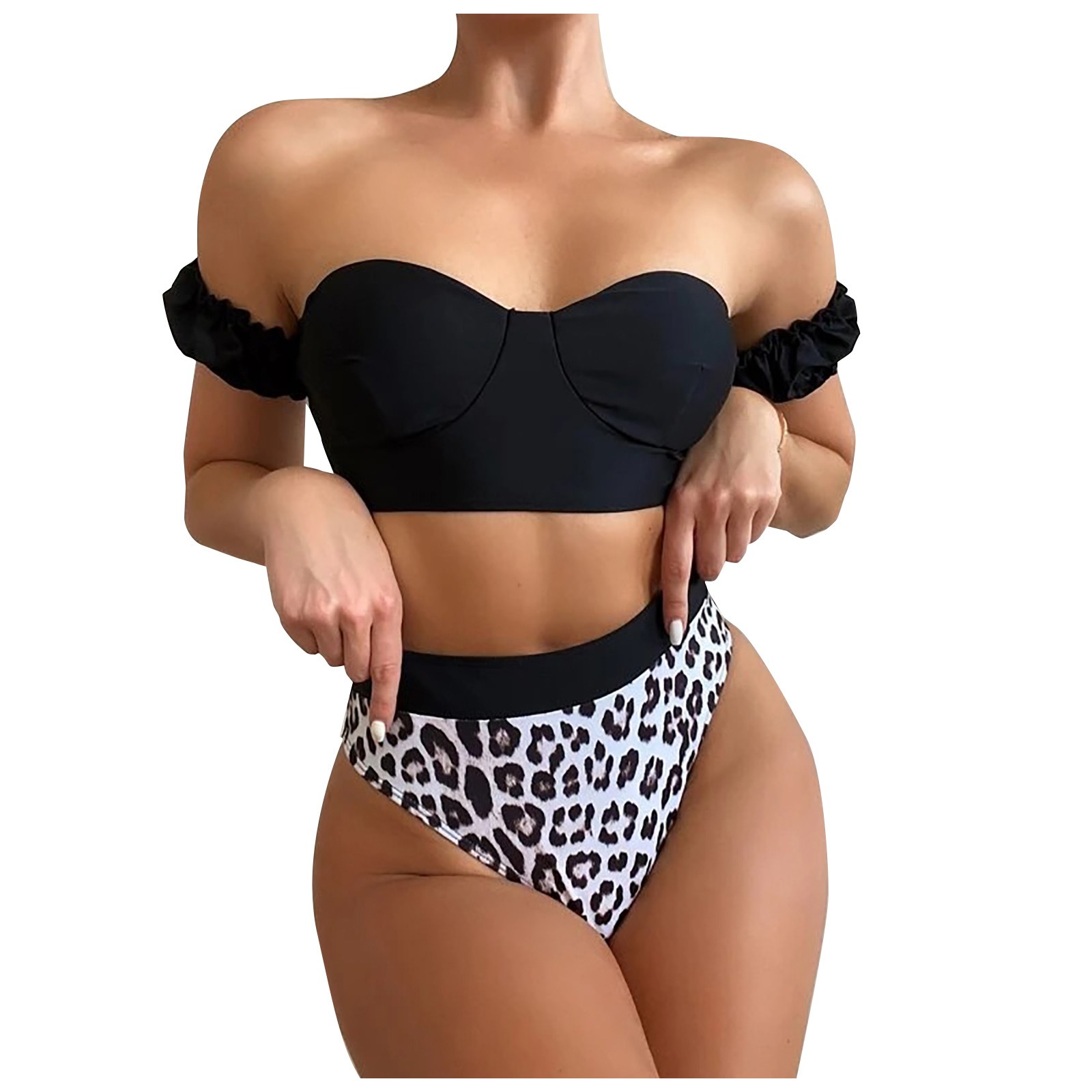 Женский модный сексуальный леопардовый принт бюстье Высокая талия раздельный купальник бикини