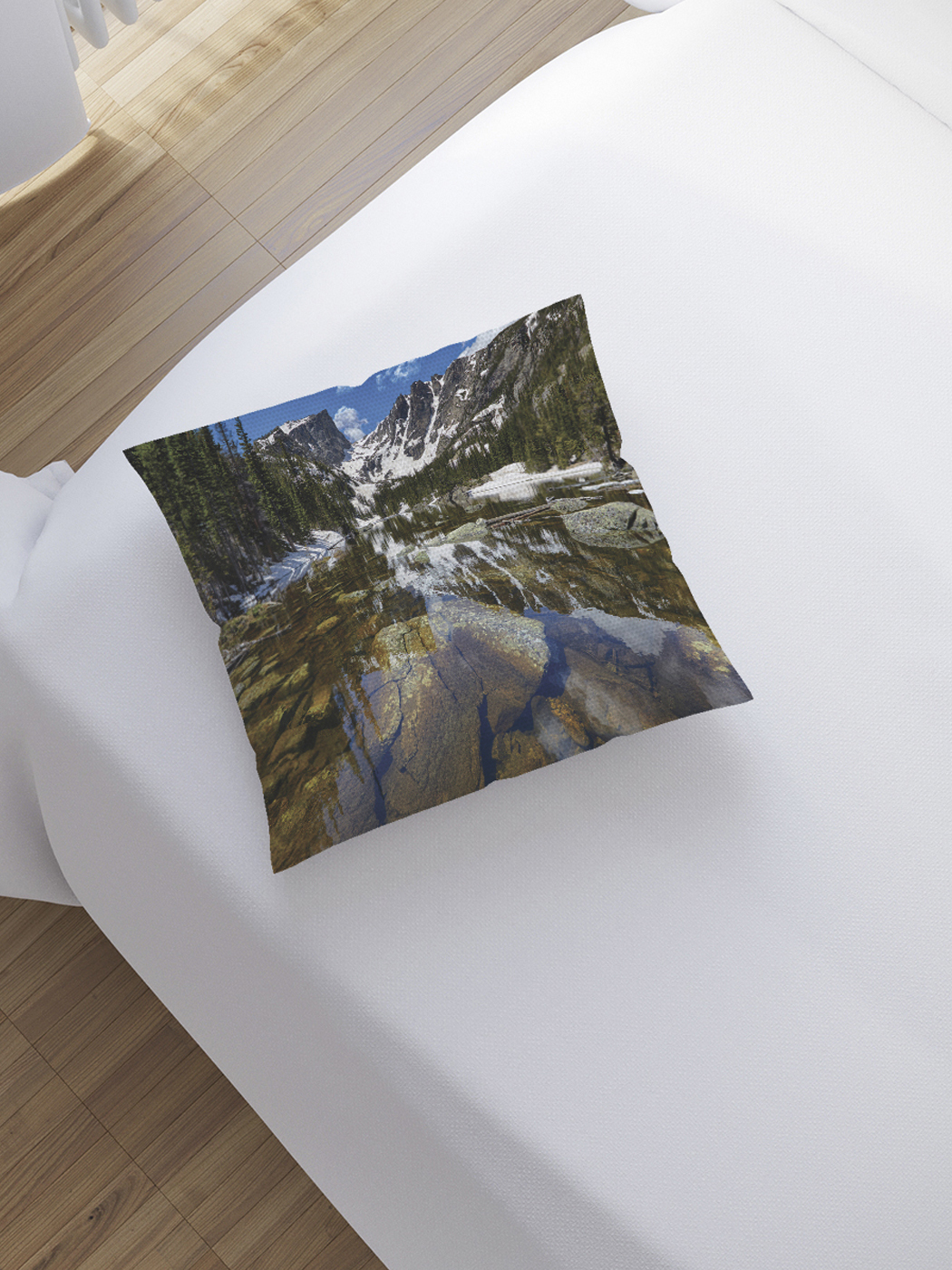 Диванные подушки - важная составляющая интерьера гостиной. Нельзя допустить, чтобы они постепенно вытерлись и утратили привлекательный вид. Одетые в новые и стильные декоративные наволочки, подушки снова будут выглядеть свежо и красиво. Яркие и контрастные, или наоборот, подчеркнуто строгие диванные подушки создадут нужную атмосферу и подчеркнут стиль и уют вашего гостеприимного дома. Наволочка "Хрустальная река возле гор" на молнии пошита из ткани "Оксфорд", она плотная и хорошо держит форму, рисунок получается яркий и четкий. Подходит для подушек размером 45х45 см, и отлично переносит стирку. Рисунок нанесен на изделие с двух сторон, а молния расположена таким образом, чтобы не мешать отдыху и не бросаться в глаза.