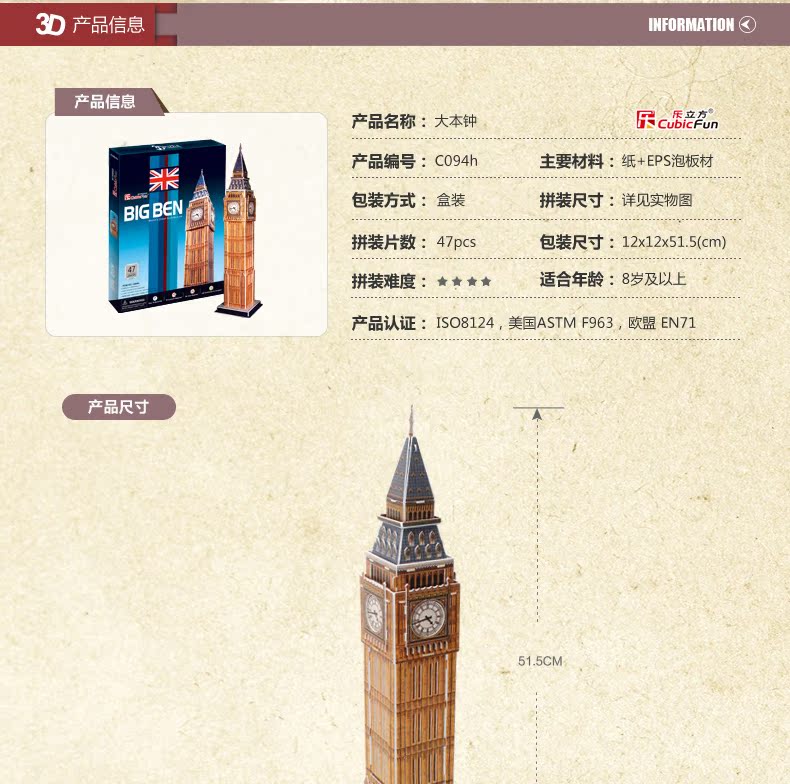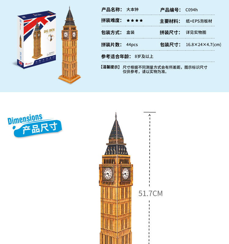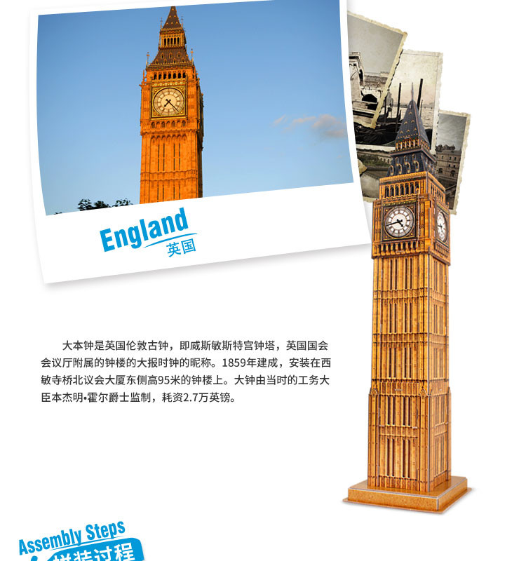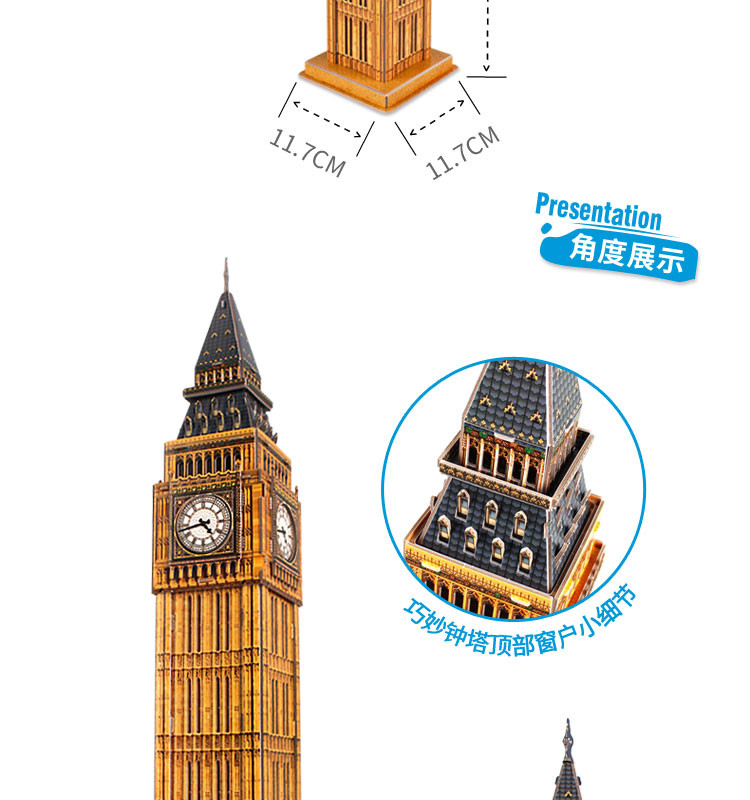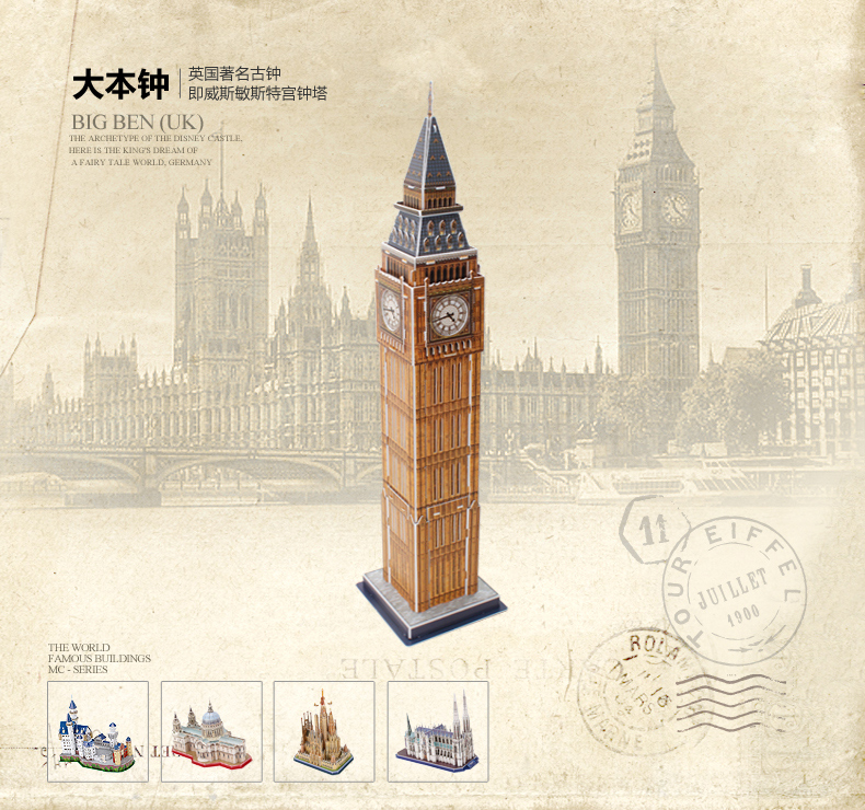 3D головоломка бумажная модель DIY toyworld great architecture UK London big Ben boy подарок на день рождения Рождество 1 шт