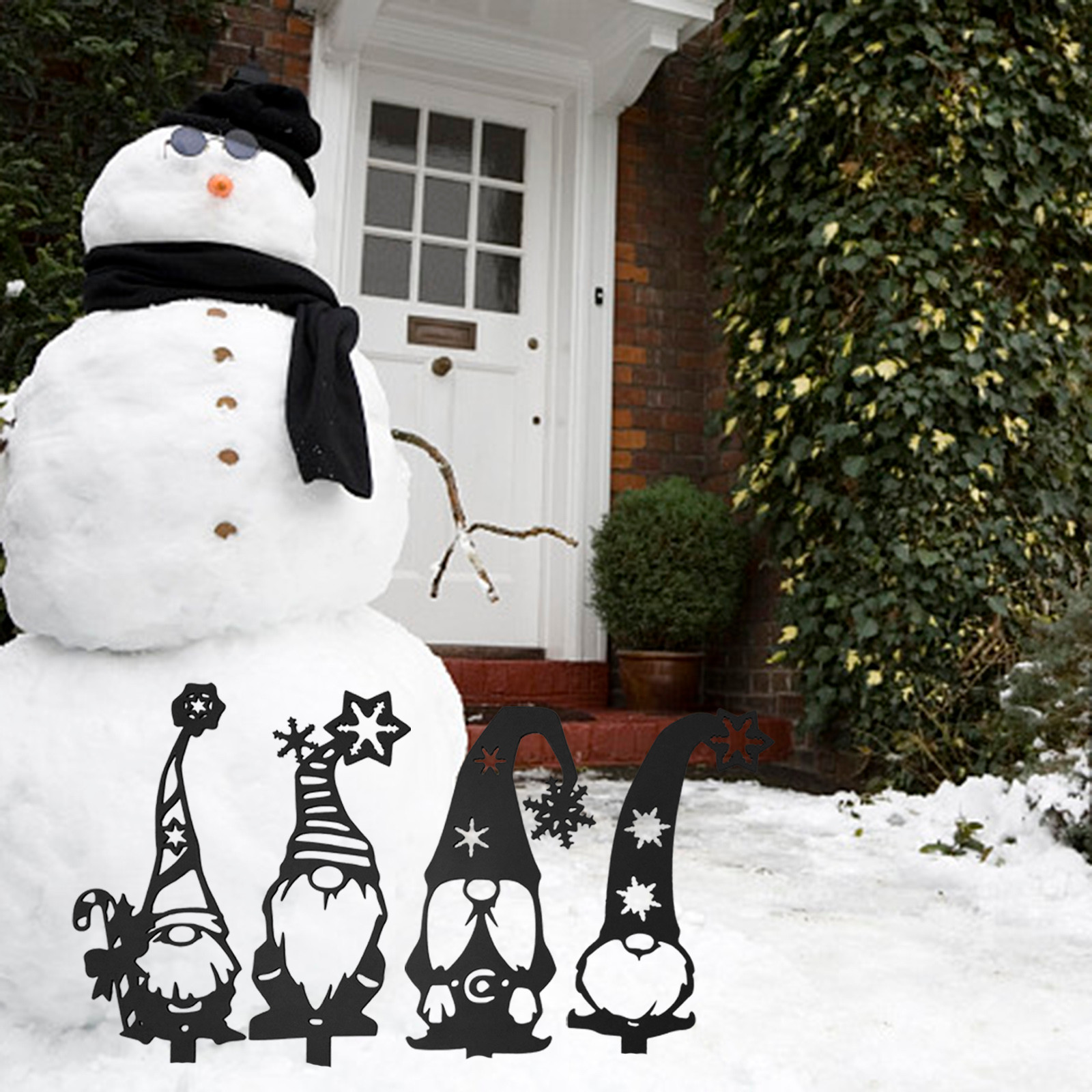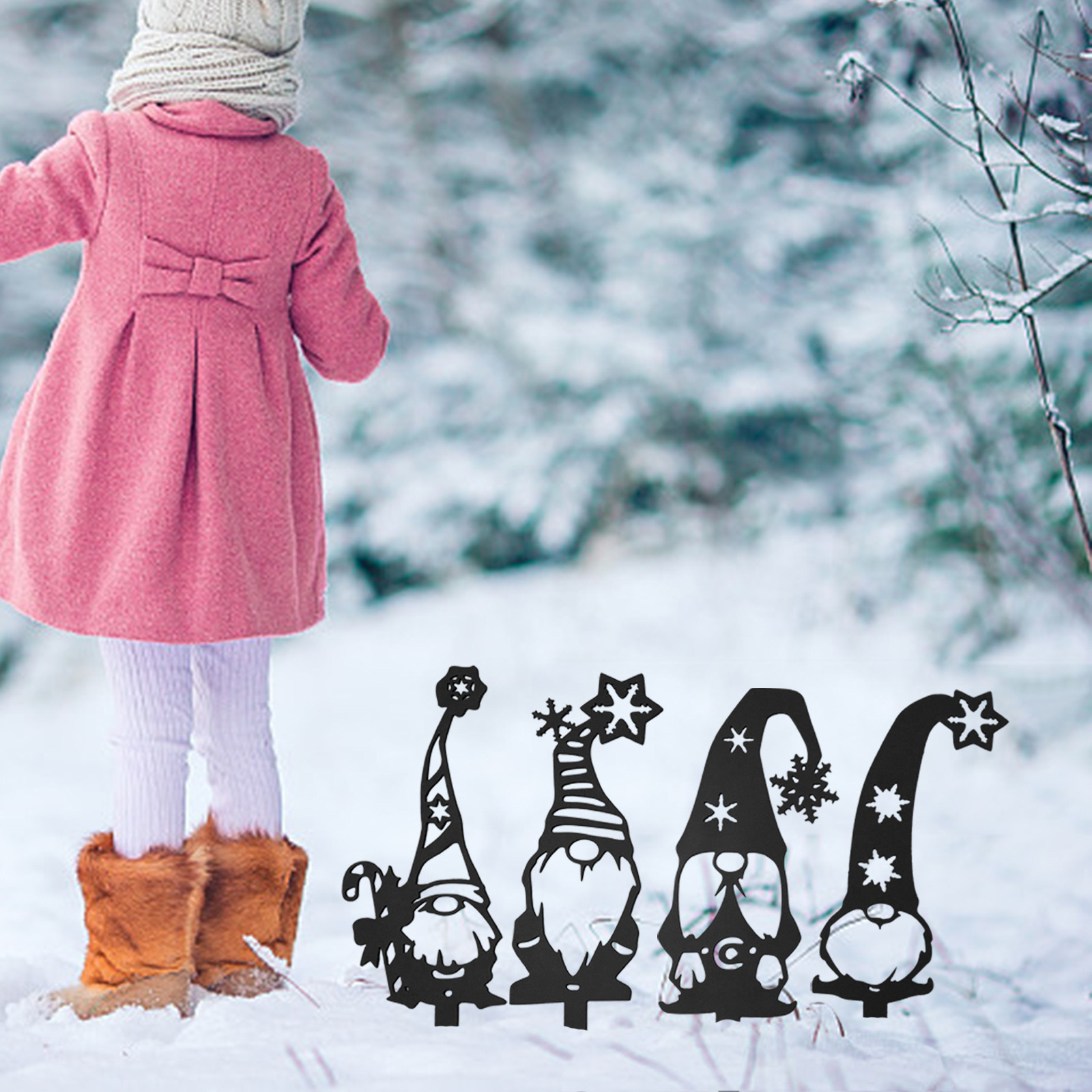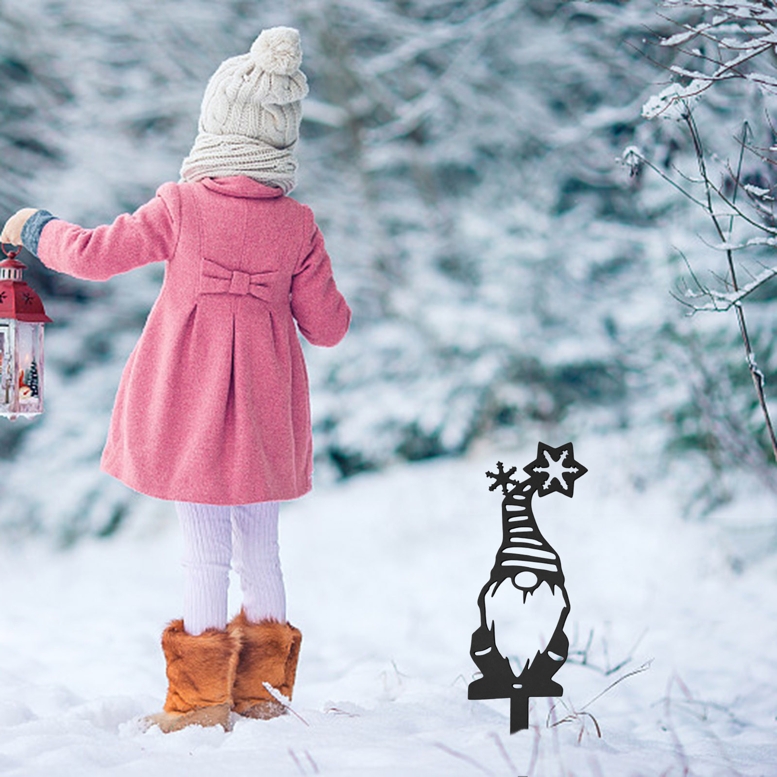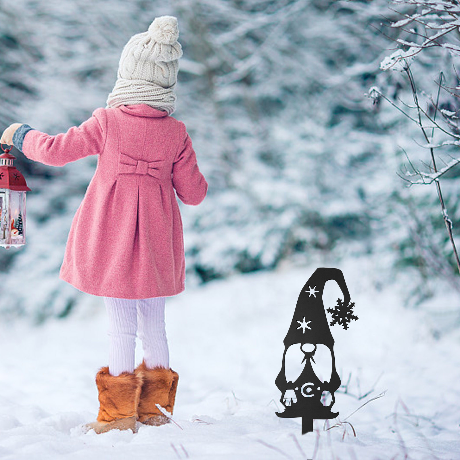Металлические зимние украшения гнома, садовые наземные искусства, снежинки карликовые эльфы