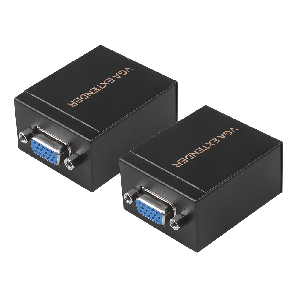 Расширитель VGA включает передатчик сигнала и приемник. Передатчик, связанный с основным двигателем, преобразует сигнал VGA в стандартный TCP/IP и передает через Интернет. Приемник, подключенный к дисплею, преобразует стандартный сигнал TCP/IP в сигнал VGA. Короче говоря, удлините сигнал VGA 60 метров кабелем CAT -5e /6.