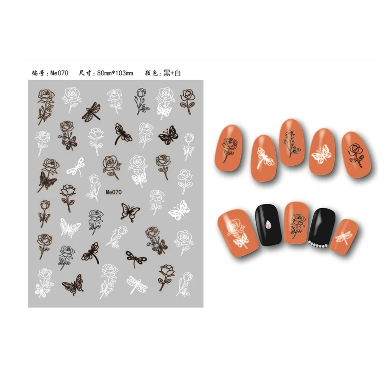 10 шт Новый черный и белый шрифт стикер для ногтей переводная Роза цветок клейкая аппликация ногтевая декоративная наклейка