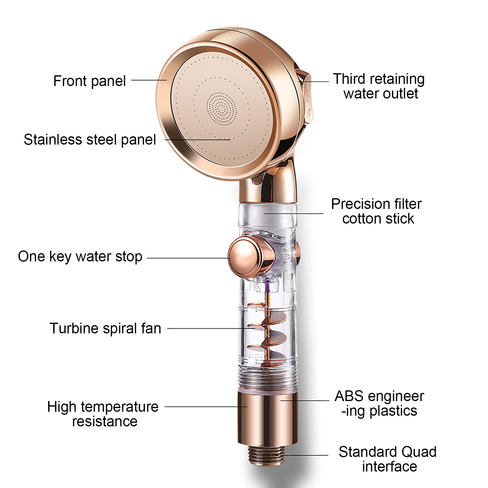 Shower Head Filter Filtration High Pressure Water Saving 3 Mode Function Spray Handheld Showerheads