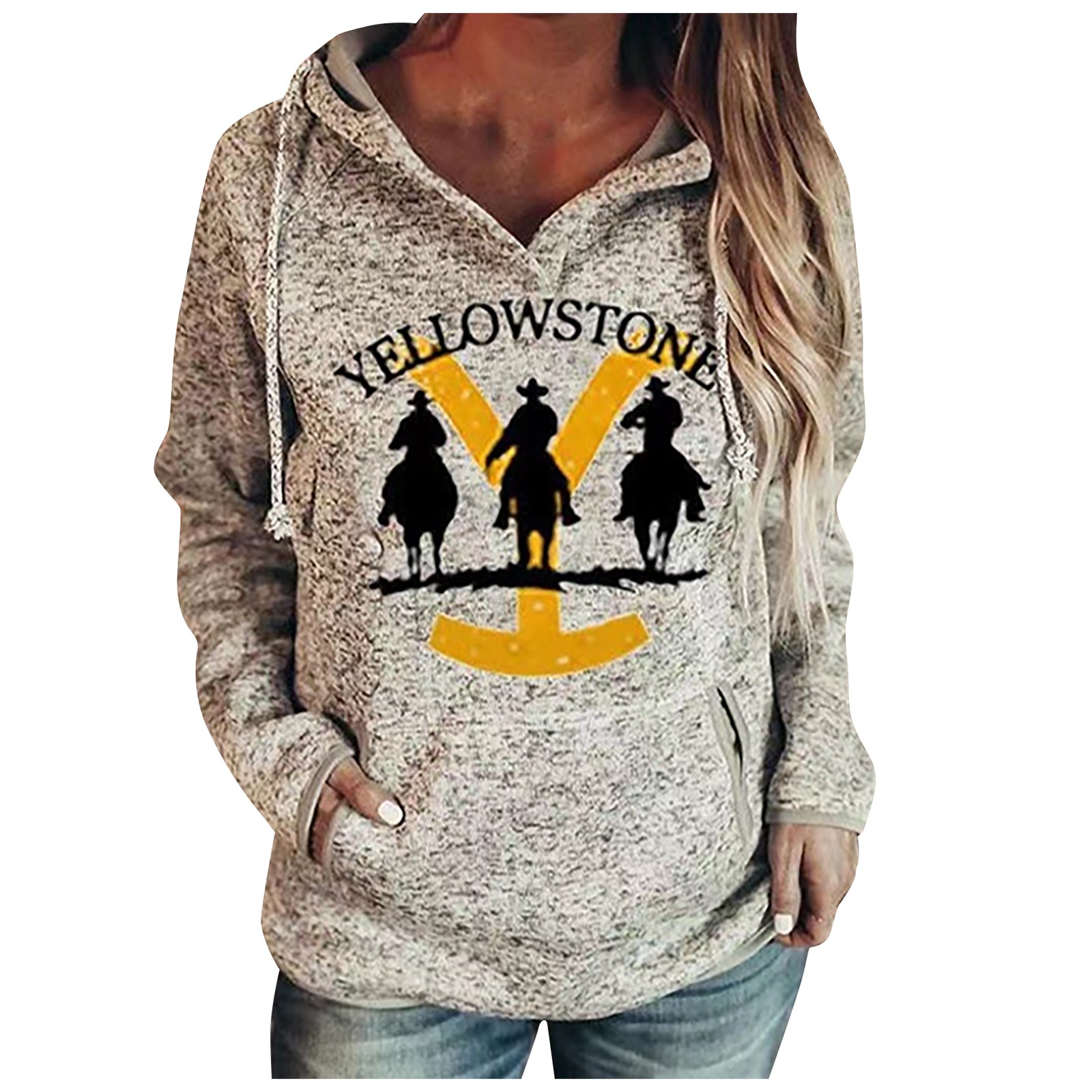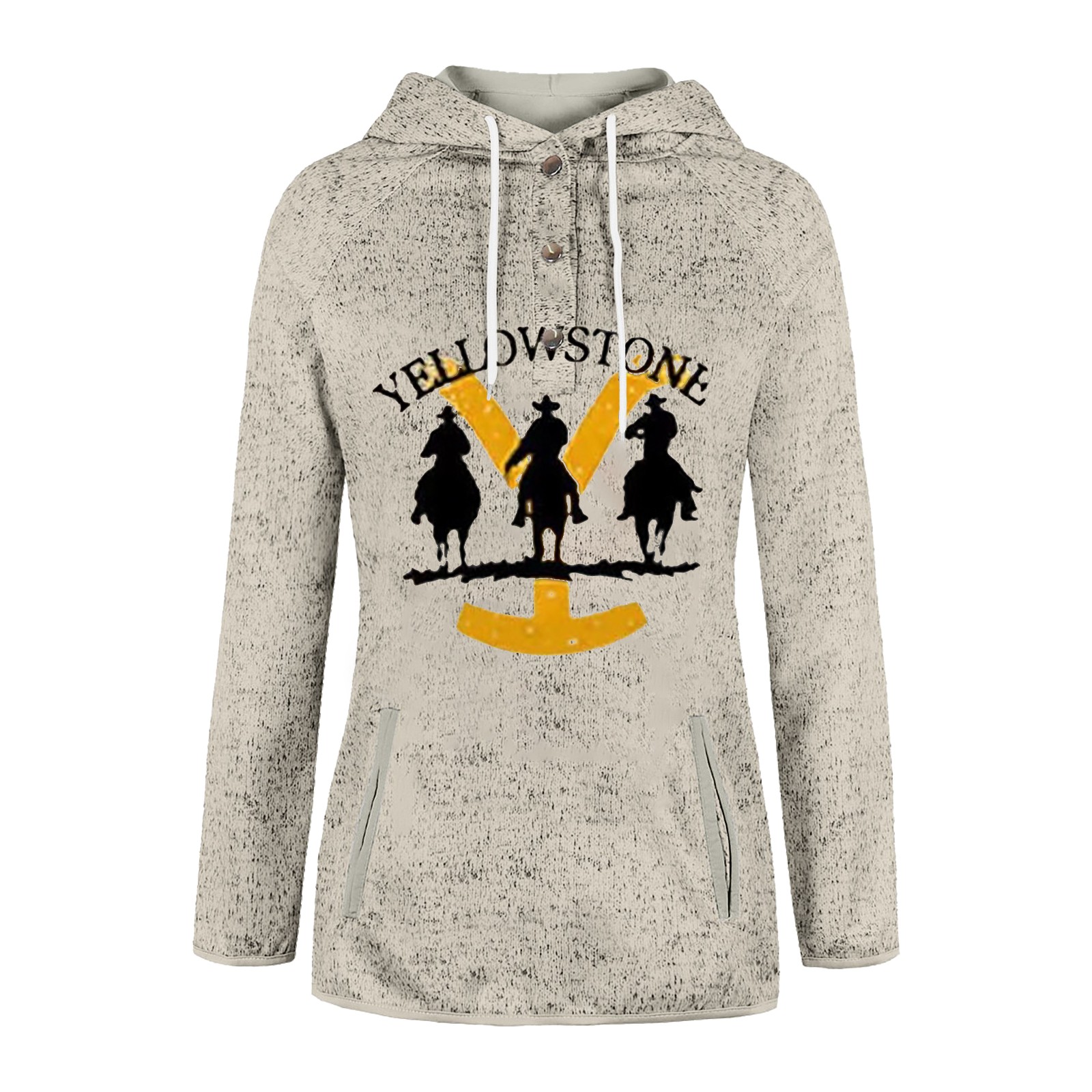 Женский свитер с капюшоном и воротником-стойкой с принтом желтого камня