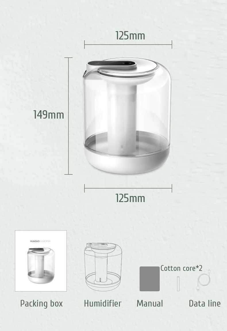 Я рад, что вы заметили наш увлажнитель.<;br/> информация об этом продукте:<;br/> Продукты: Портативный USB увлажнитель <;br/> Емкость воды: 1000 мл <;br/> Размер: 125 мм * 125 мм * 149 мм <;br/> Цвет: белый, зеленый <;br/> Мощность: 2 Вт <;br/> Напряжение: 5 В <;br/> Мощность распыления: 50 мл/ч <;br/> Как использовать:<;br/>1. Откройте верхнюю крышку против часовой стрелки <;br/>2. Добавьте воду <;br/>3. Подключите источник питания USB <;br/>4. Нажмите на переключатель и включите режим распыления.<;br/> Продукты включают:<;br/>1. Увлажнитель * 1, хлопок <;br/>2. Usb-кабель для передачи данных * 1<;br/>3. Инструкции по использованию * 1<;br/> переключатель:<;br/> Откройте непрерывный режим распыления в соответствии с первым временем и остановите в течение 4 часов.<;br/> Нажмите второй, откройте режим зазора спрей, спрей 3 секунды, чтобы остановить в течение 2 секунд, регулярно спрей 8 часов, чтобы остановить.<;br/> Нажмите третий, Прекратите распыление.<;br/> светильник ing :<; br/> для включения нажмите и удерживайте выключатель для 1,5 секунд в первый раз, чтобы включить светодиоднyю подсветку с ярко-желтый светильник ;<; br/> Нажмите и удерживайте кнопку на второй раз, чтобы включить светодиоднyю подсветку с теплый желтый светильник;<;br/> Третий длинный пресс, чтобы выключить светильник s.<;br/> Функция синхронизации: <;br/> непрерывная хижина автоматически останавливается в течение 4 часов, а интервальный Спрей автоматически останавливается в течение 8 часов.<;br/> световой светильник: <; Br/> Красный светильник включается при зарядке и выключается, когда лампа заполнена. (при работе светильник индикатора белый).