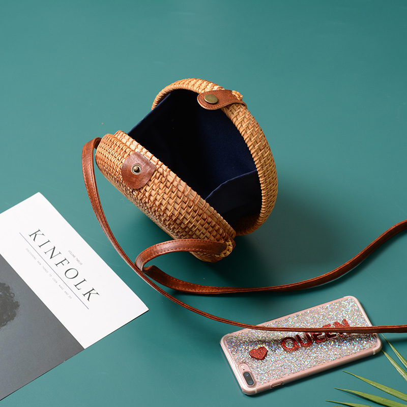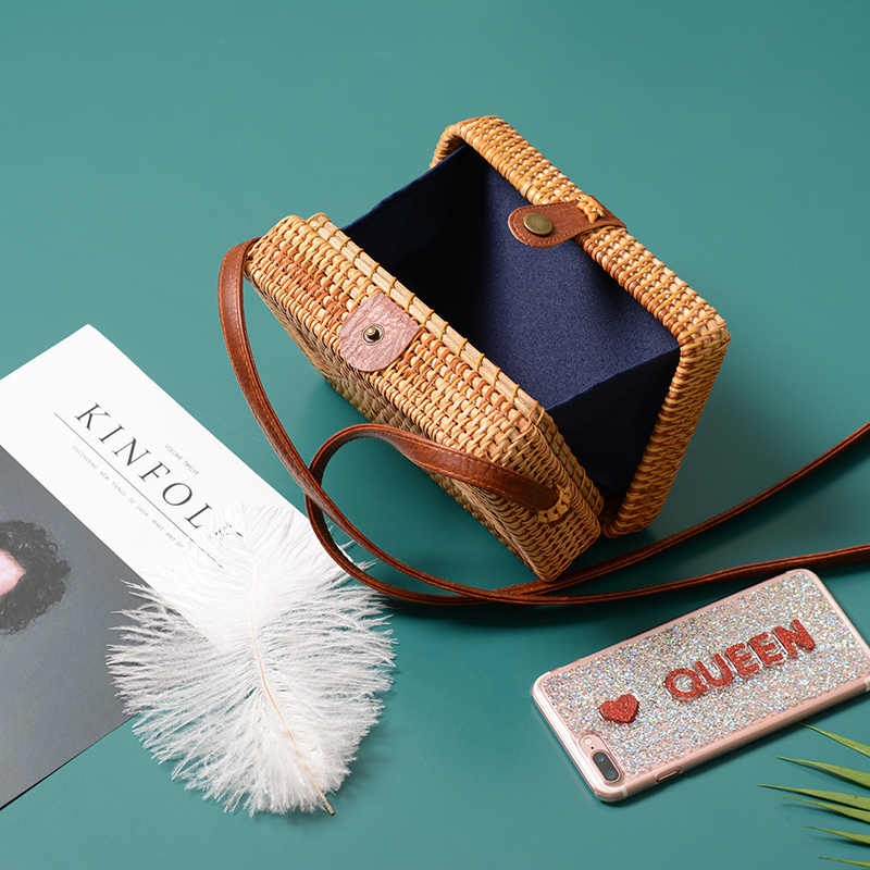 Сумка из ротанга Ins, диагональная мини-сумка Mori Basket, винтажная ручная тканая кожаная сумка с пряжкой, кошельки