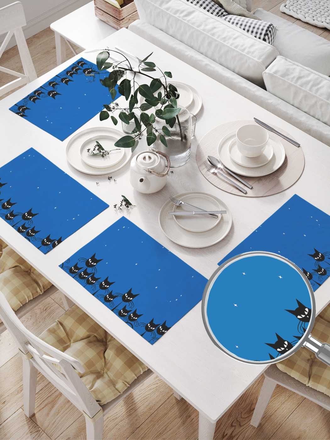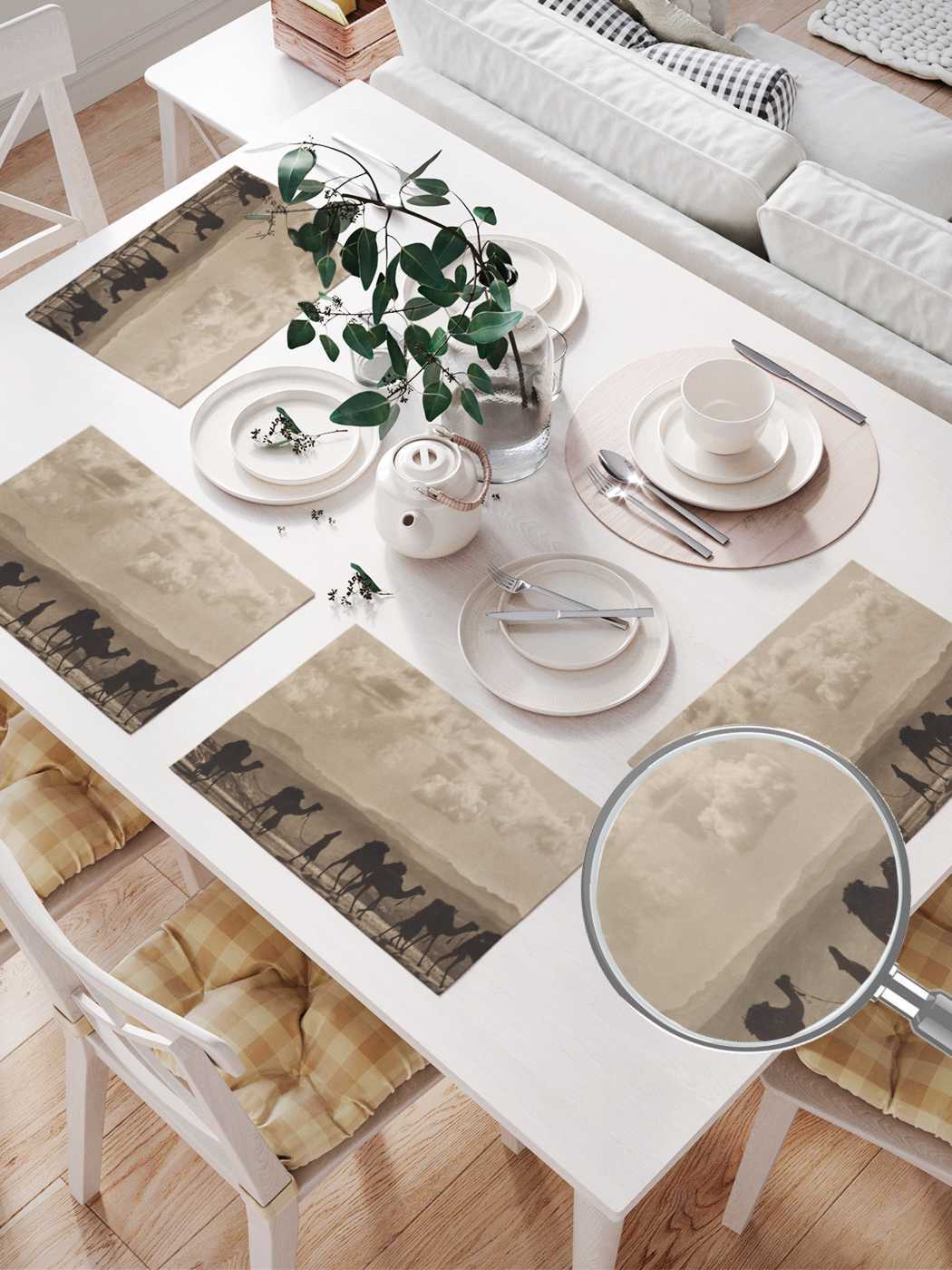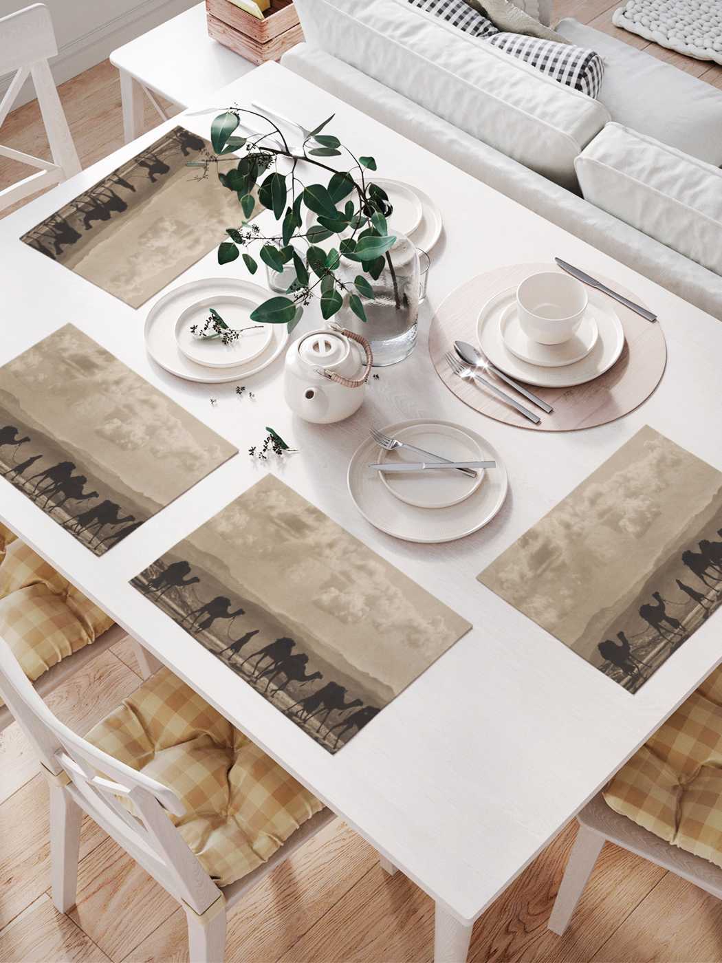 Serving a table with textile napkins is convenient, simple, fast and beautiful. A set consisting of four napkins is made of durable, wear-resistant material, which is perfectly washed and does not require ironing. The drawing on the napkins is transferred using sublimation printing. This method allows you to apply a wide variety of images, using all the colors. Thanks to this, you have a huge selection of prints. You can choose napkins for any style, color and even holiday. By the way, a set of serving napkins is a great gift, which will be happy in any house.