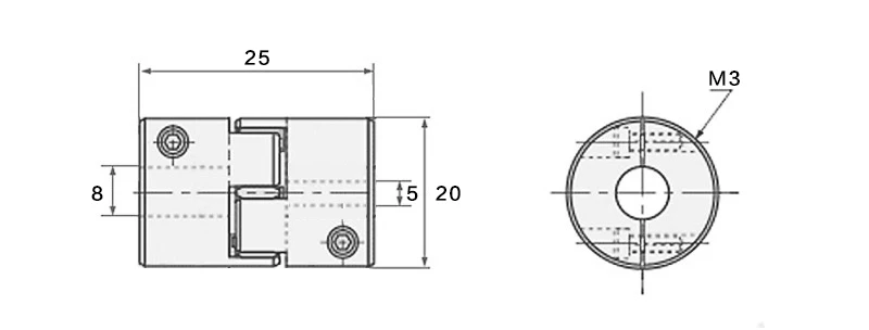 Размер: L = 25 мм D = 20 мм d1 = 5 мм d2 = 8 мм