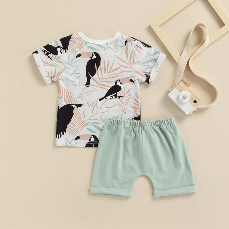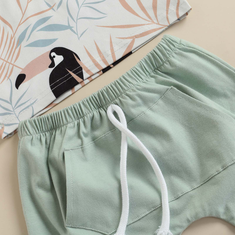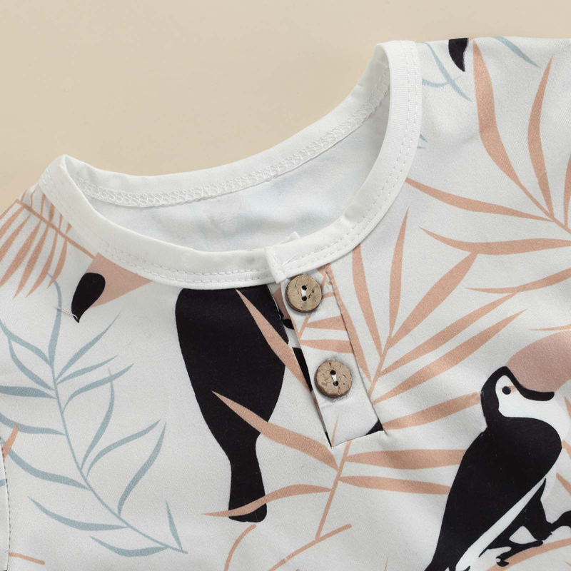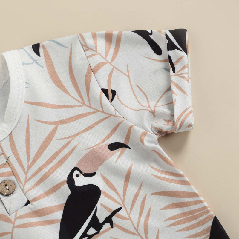 ОсобенностиФутболка с короткими рукавами и круглым вырезом с принтом птицы на пуговицах 1/4, топы с повседневными шортами на завязках, с карманами, очень подходит для летней одежды.Подходит для детей ясельного возраста для повседневной носки, праздников, отдыха, дней рождения, путешествий и т. д.