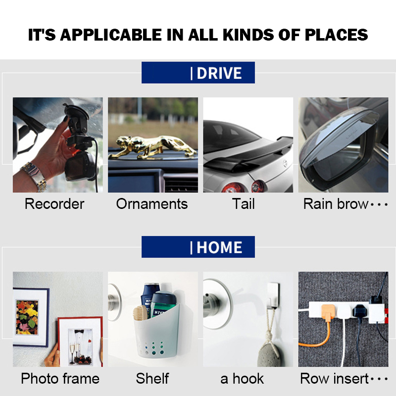 Подходит для вставки и фиксации украшения для фоторамки, мебельной декоративной ленты, автомобильной декоративной ленты, волновой доски, колесной дуги, перегородки, тормозной лампы, логотипа автомобиля, знака мотоцикла, электрической таблички, шерстяная полоска и так далее. Он имеет следующие характеристики: Сильная адгезия, хорошее удержание, УФ-защита, термостойкость, водонепроницаемость, растворимость и пластичность. Термостойкость: 80 ~ 120 C.