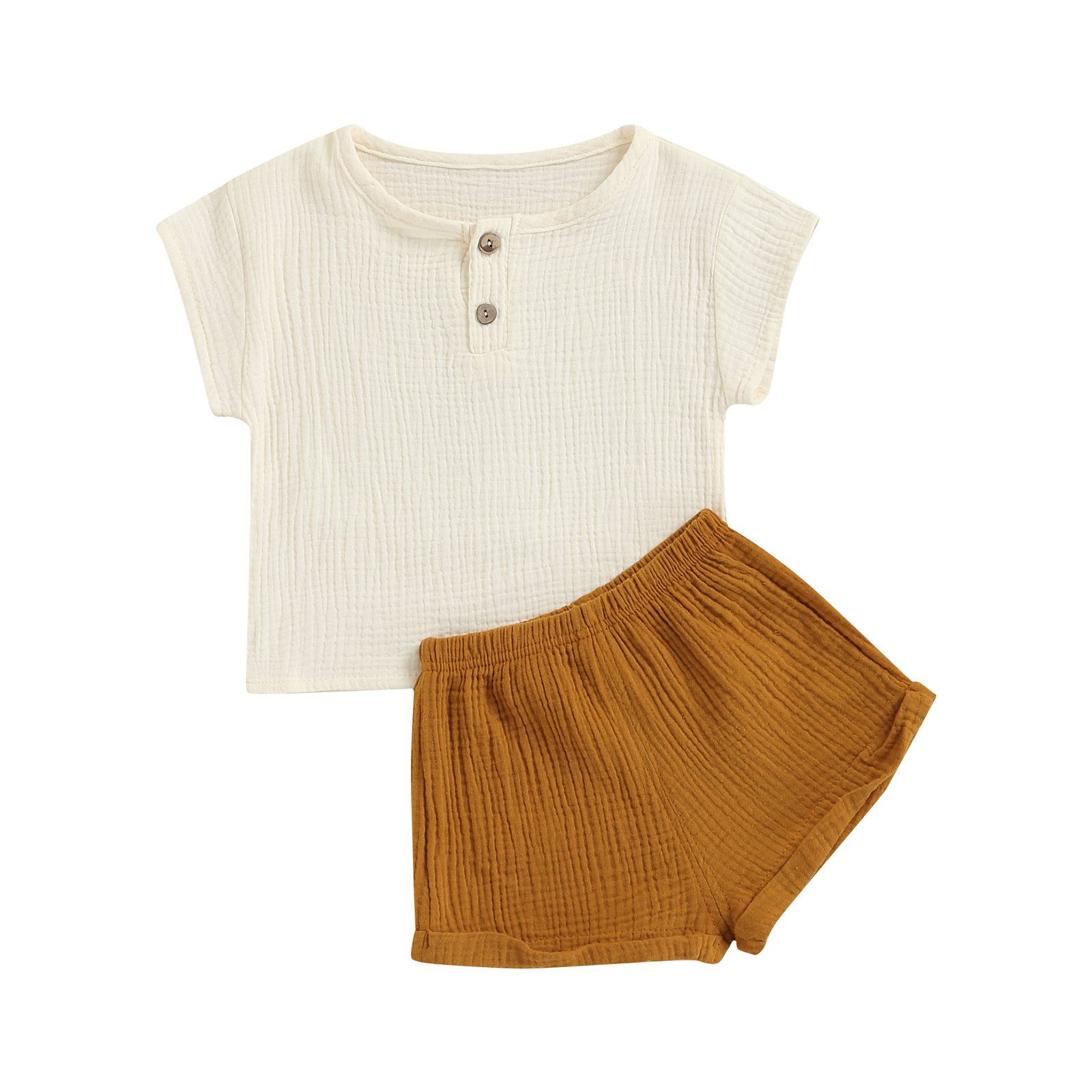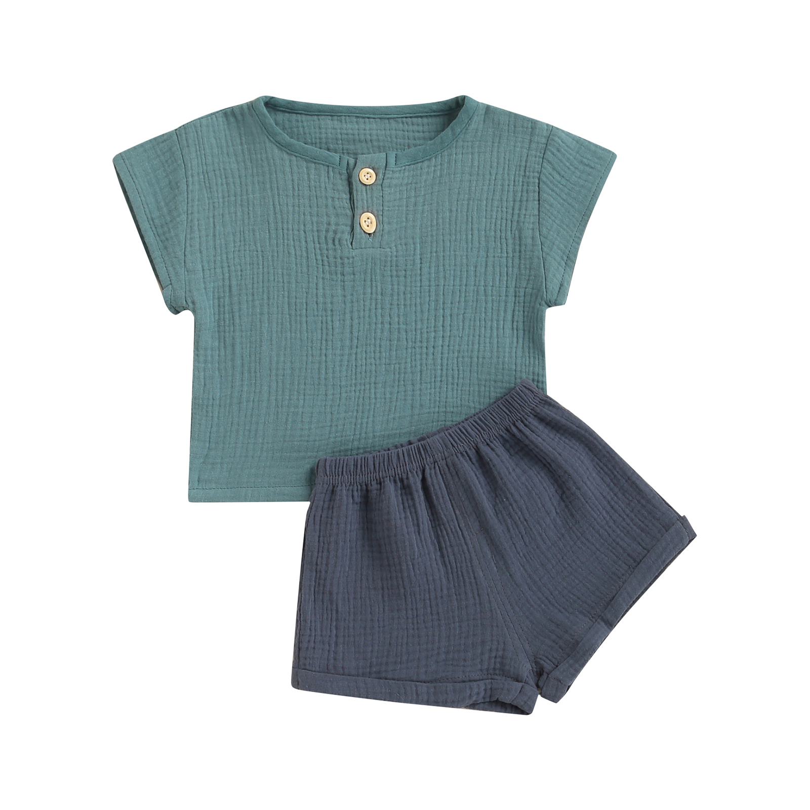 Детские однотонные топы с круглым вырезом и короткими рукавами на пуговицах + шорты