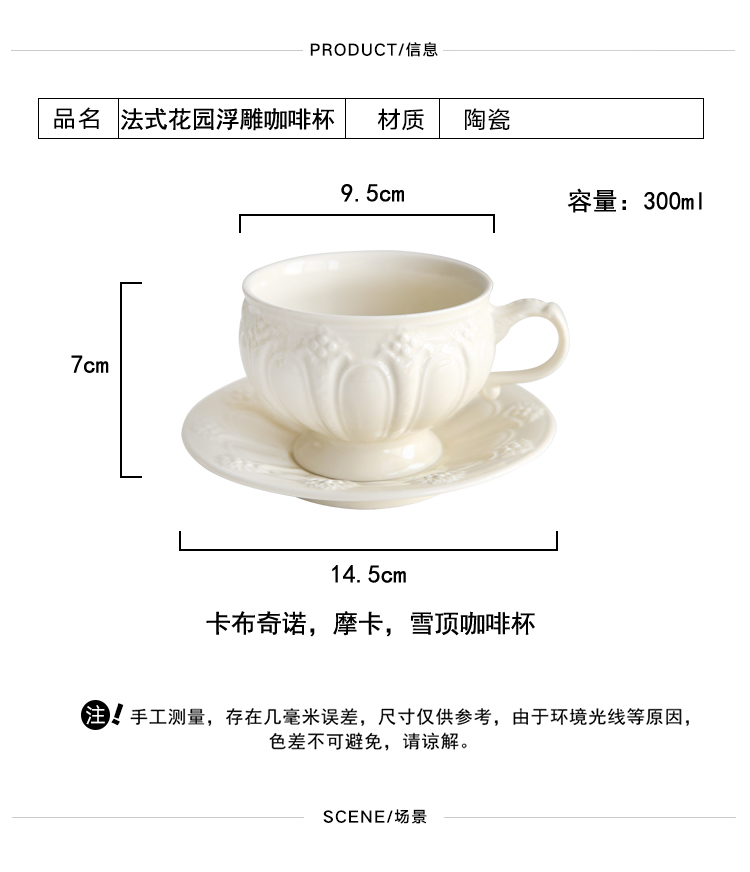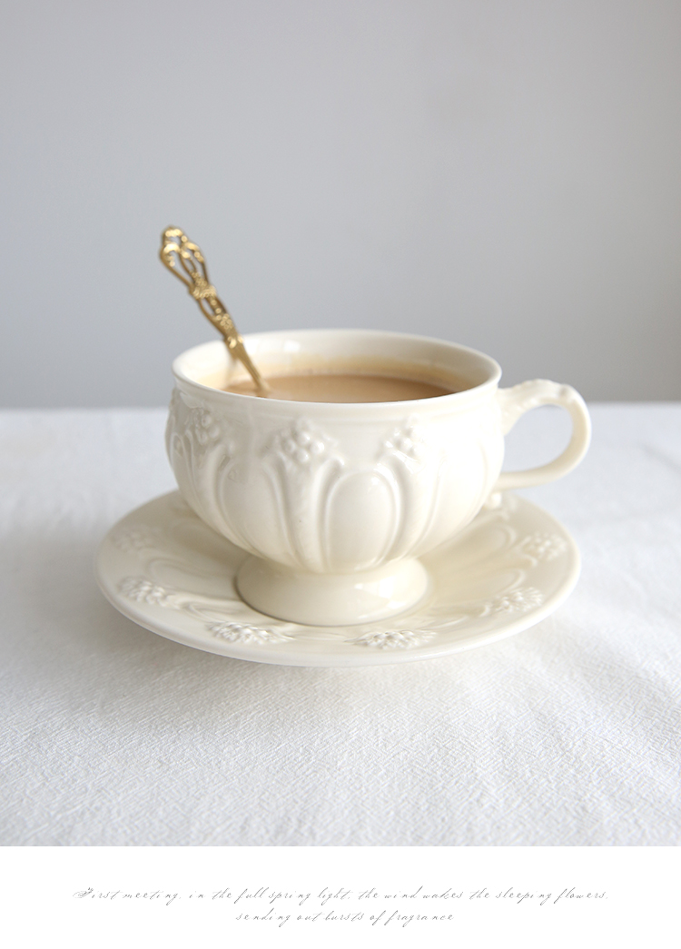 French Garden Retro Cream Embossed Ceramic Coffee Cup Saucer European Court English Afternoon Tea Black Tea Cup Cup For CoffeeSpecifications:
