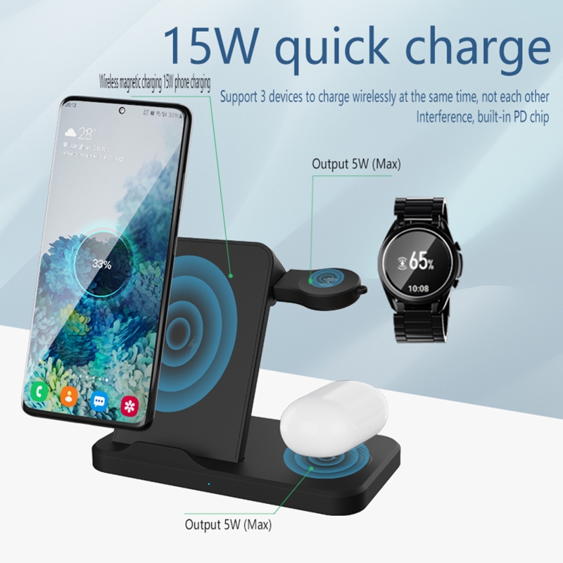 3 в 1 Беспроводное зарядное устройство для мобильных телефонов samsung, часы Airpods, несколько устройств, подарки для друзей и семьи, легкий вес, N0PB