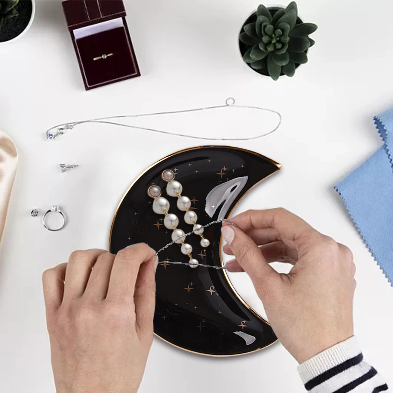 Наши лунные ювелирные изделия поднос для посуды разработан в форме Луны, который является изысканным и может быстро привлечь внимание людей. Вы можете легко найти ювелирные изделия, которые вы хотите носить с лунным лотком для посуды. И его можно использовать в домах, офисах, магазинах и других местах.
