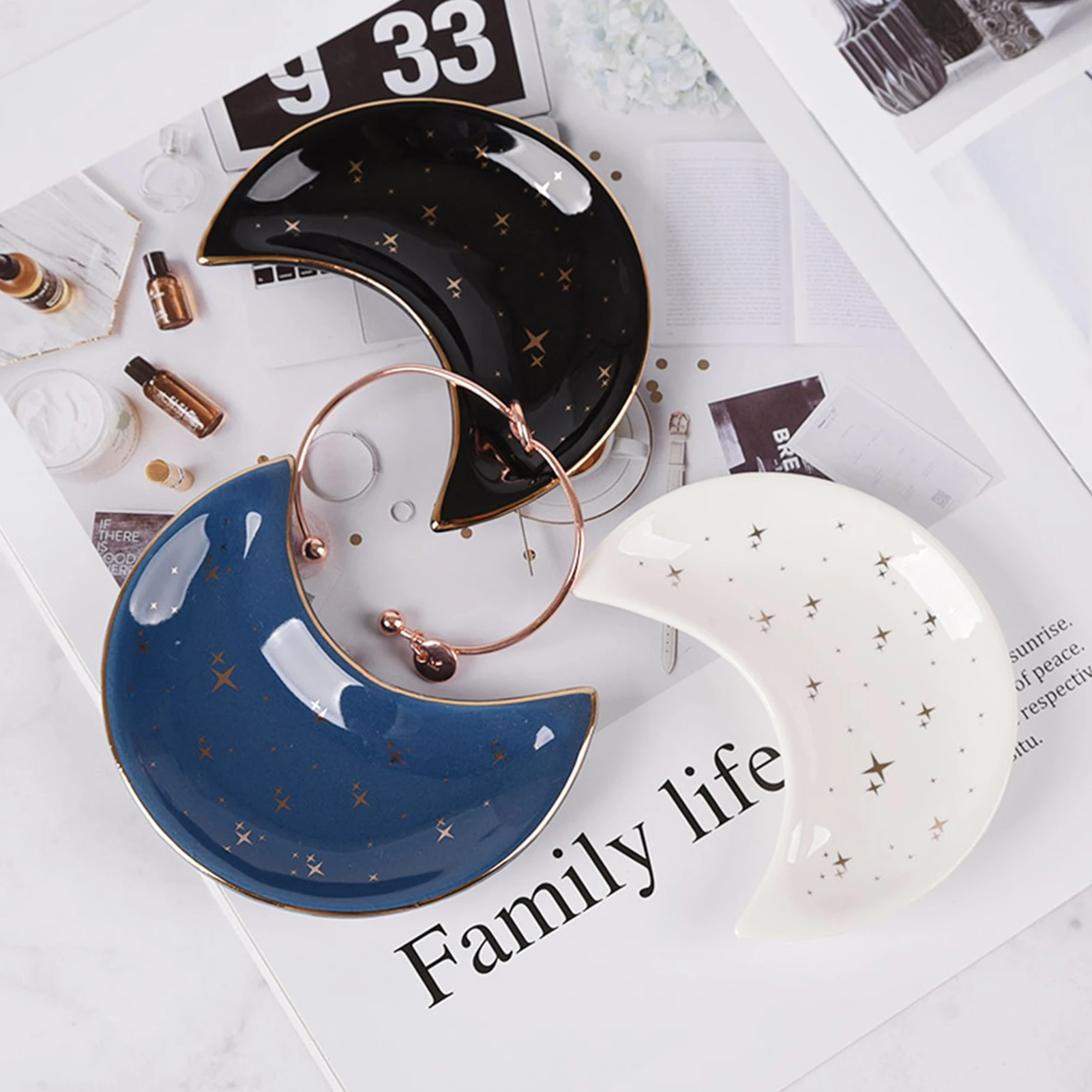 2. Керамический материал: лоток для посуды Moon Jewelry изготовлен из высококачественной керамики s, нарисованной и выплавленной вручную.