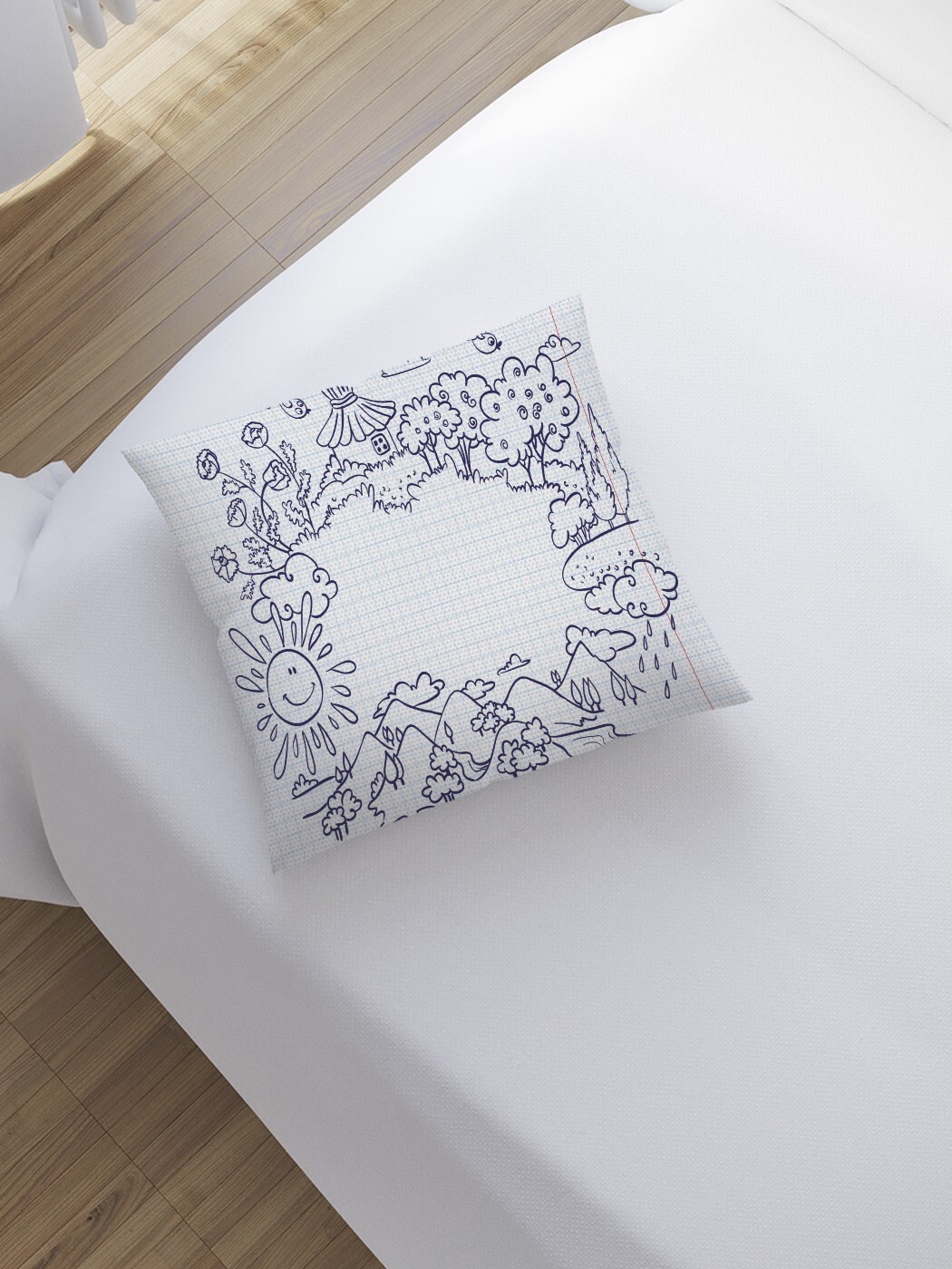 Диванные подушки - важная составляющая интерьера гостиной. Нельзя допустить, чтобы они постепенно вытерлись и утратили привлекательный вид. Одетые в новые и стильные декоративные наволочки, подушки снова будут выглядеть свежо и красиво. Яркие и контрастные, или наоборот, подчеркнуто строгие диванные подушки создадут нужную атмосферу и подчеркнут стиль и уют вашего гостеприимного дома. Наволочка "Рисунок на листе тетради" на молнии пошита из ткани "Оксфорд", она плотная и хорошо держит форму, рисунок получается яркий и четкий. Подходит для подушек размером 45х45 см, и отлично переносит стирку. Рисунок нанесен на изделие с двух сторон, а молния расположена таким образом, чтобы не мешать отдыху и не бросаться в глаза.