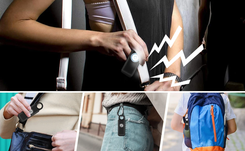 Простой в использовании/переноске поставляется с крючком, чтобы легко прикрепить сигнализацию к сумкам, ремням, курткам, брелкам и т. д. просто потяните штырь и громкий звук 130 дБ и мигающий стробоскопический светильник услышит вас.