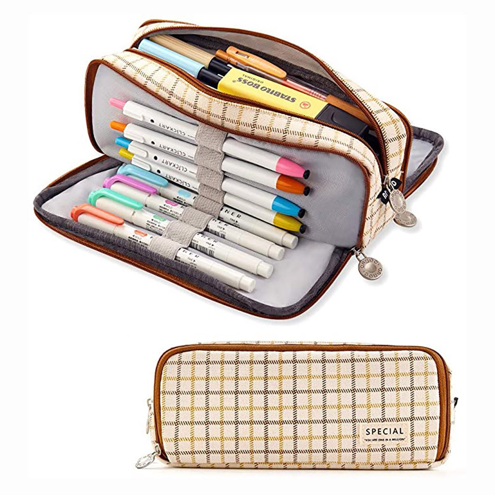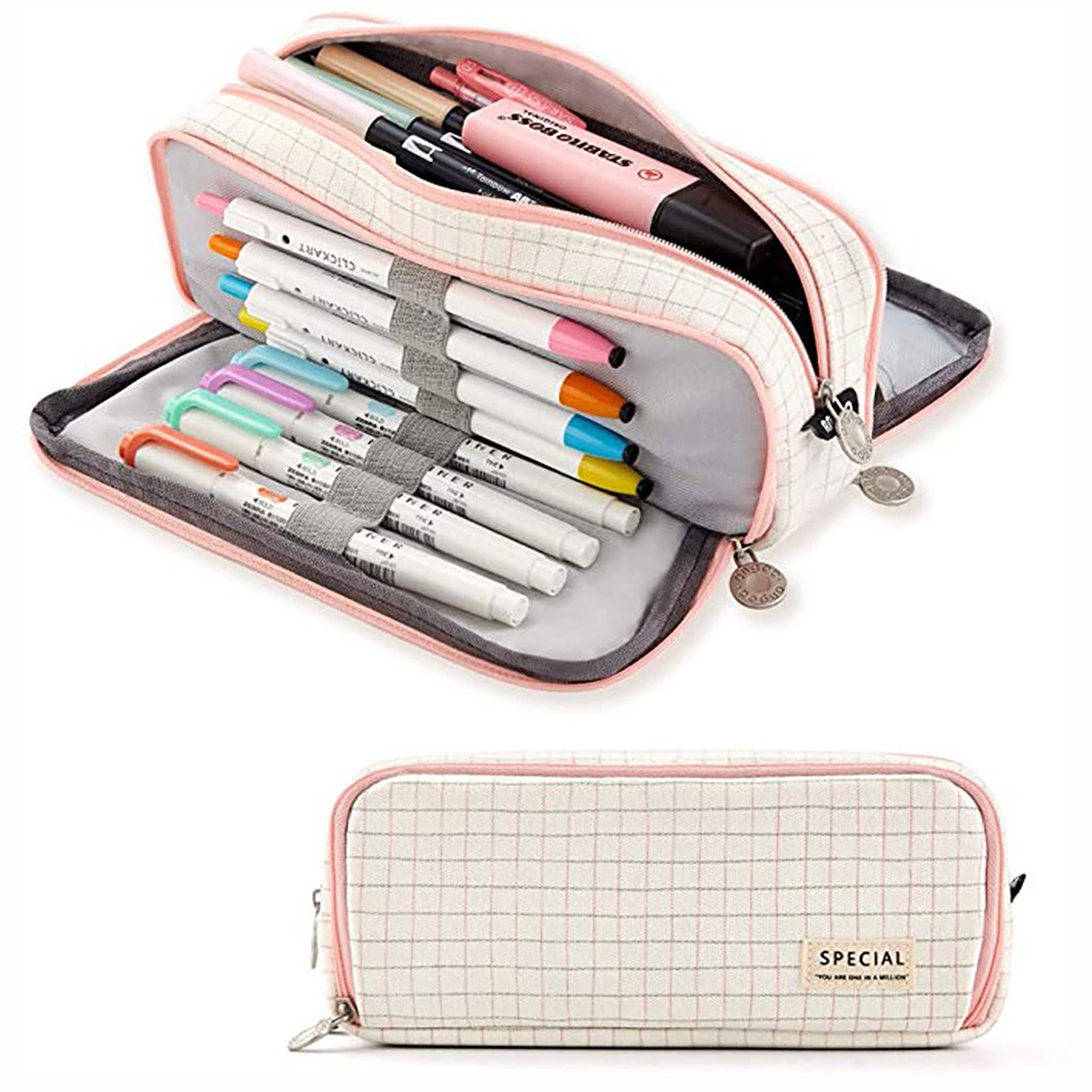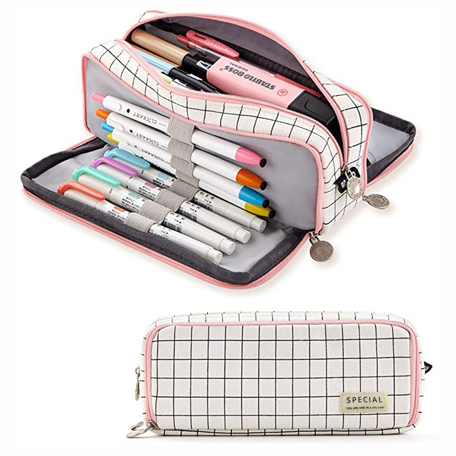 Большая емкость: молния закрыта размер, сложите его для нескольких ручек или разверните для большего количества ручек, емкость позволяет до 50 ручек/карандашей/20 см линейка и другие гаджеты.