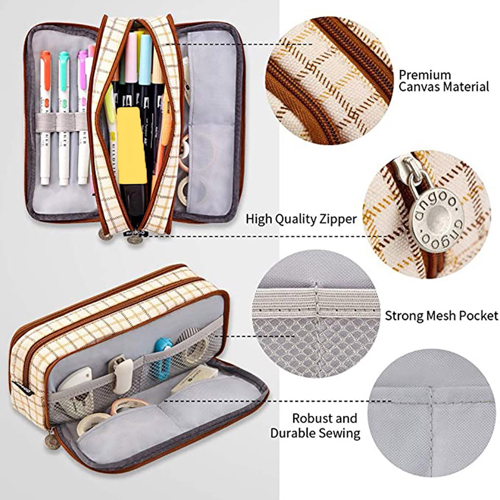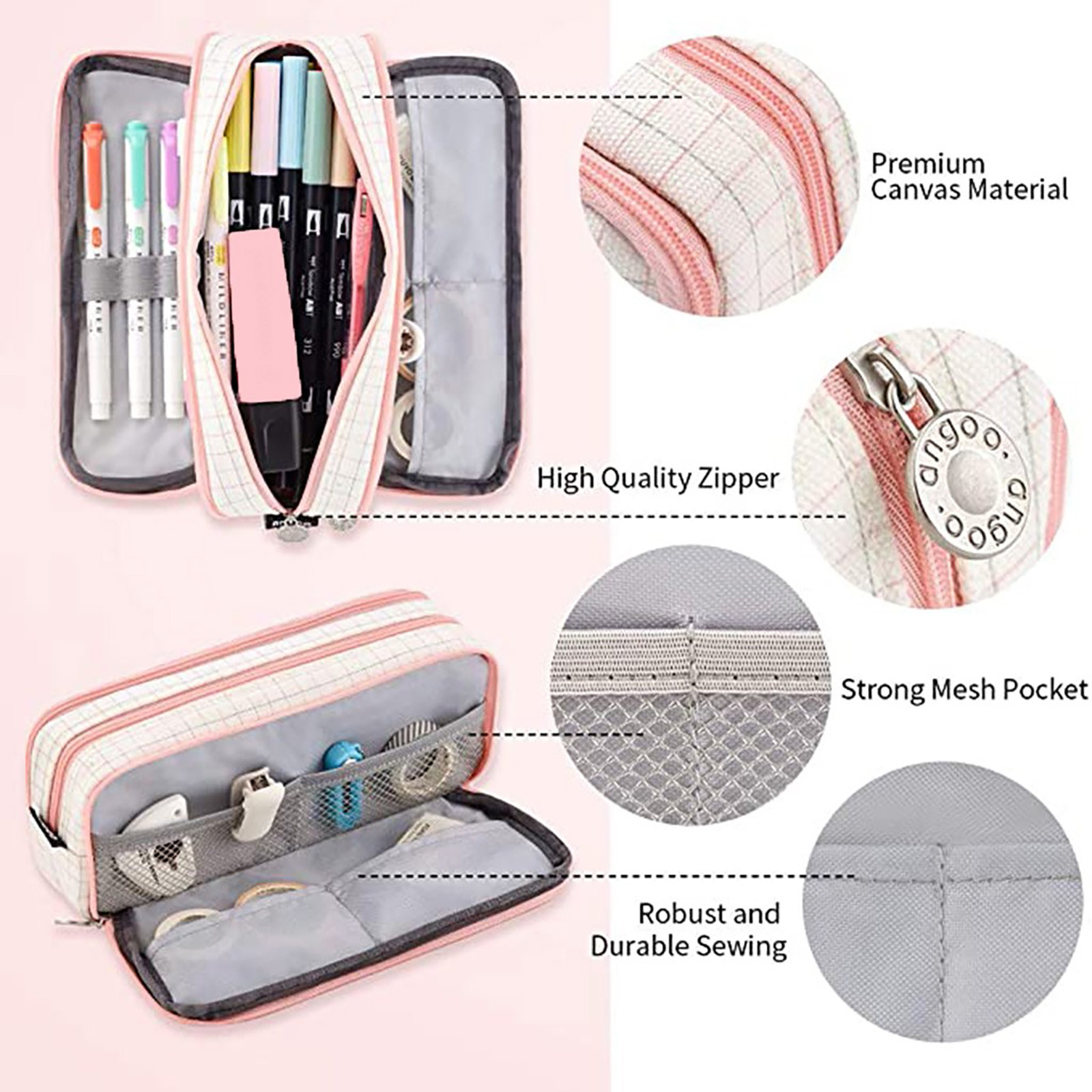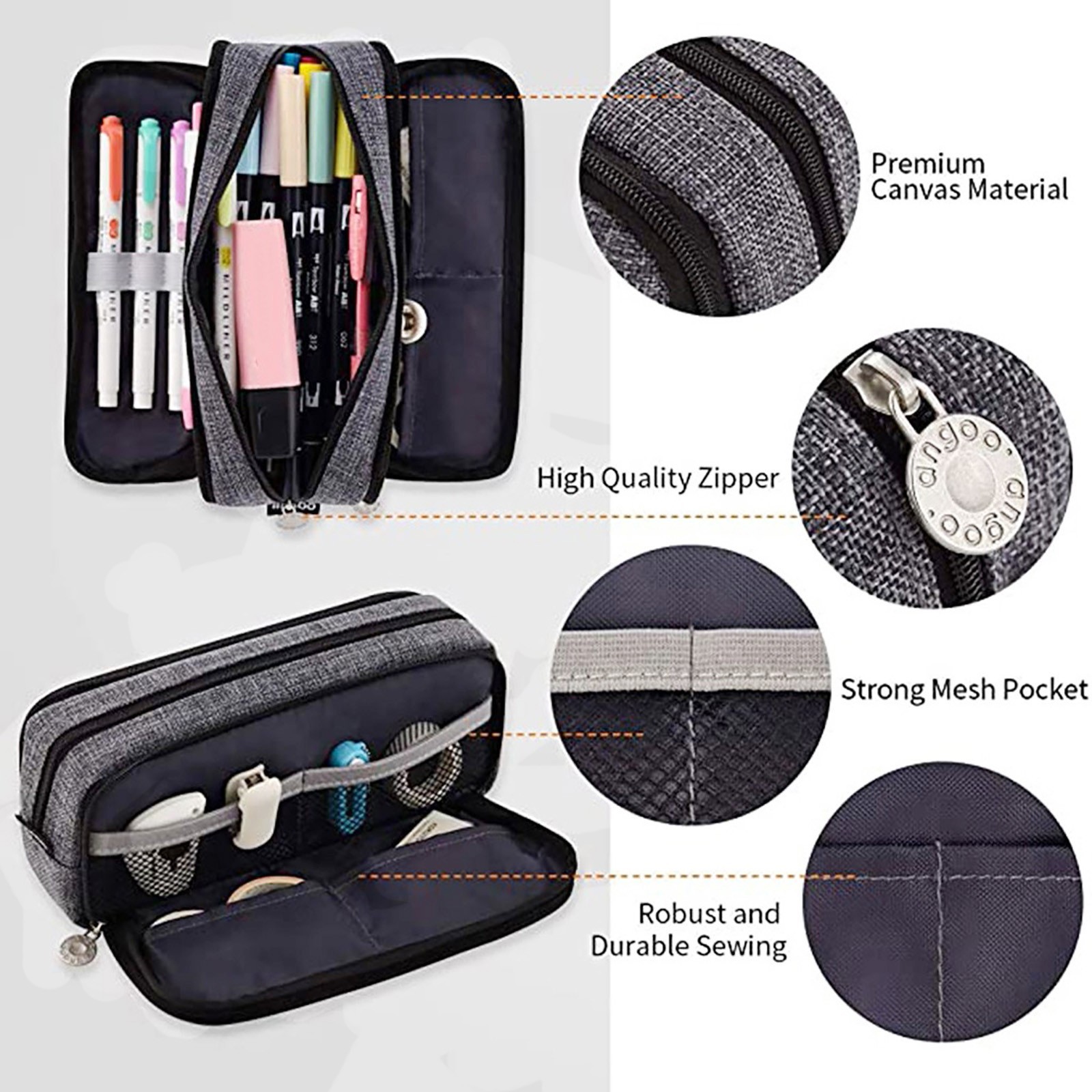 Многофункциональное использование: удобно хранить ручки, карандаши, художественные кисти и другие аксессуары. Подходит для различных случаев, таких как офис, путешествия, также можно использовать в качестве сумки acoin или косметички.
