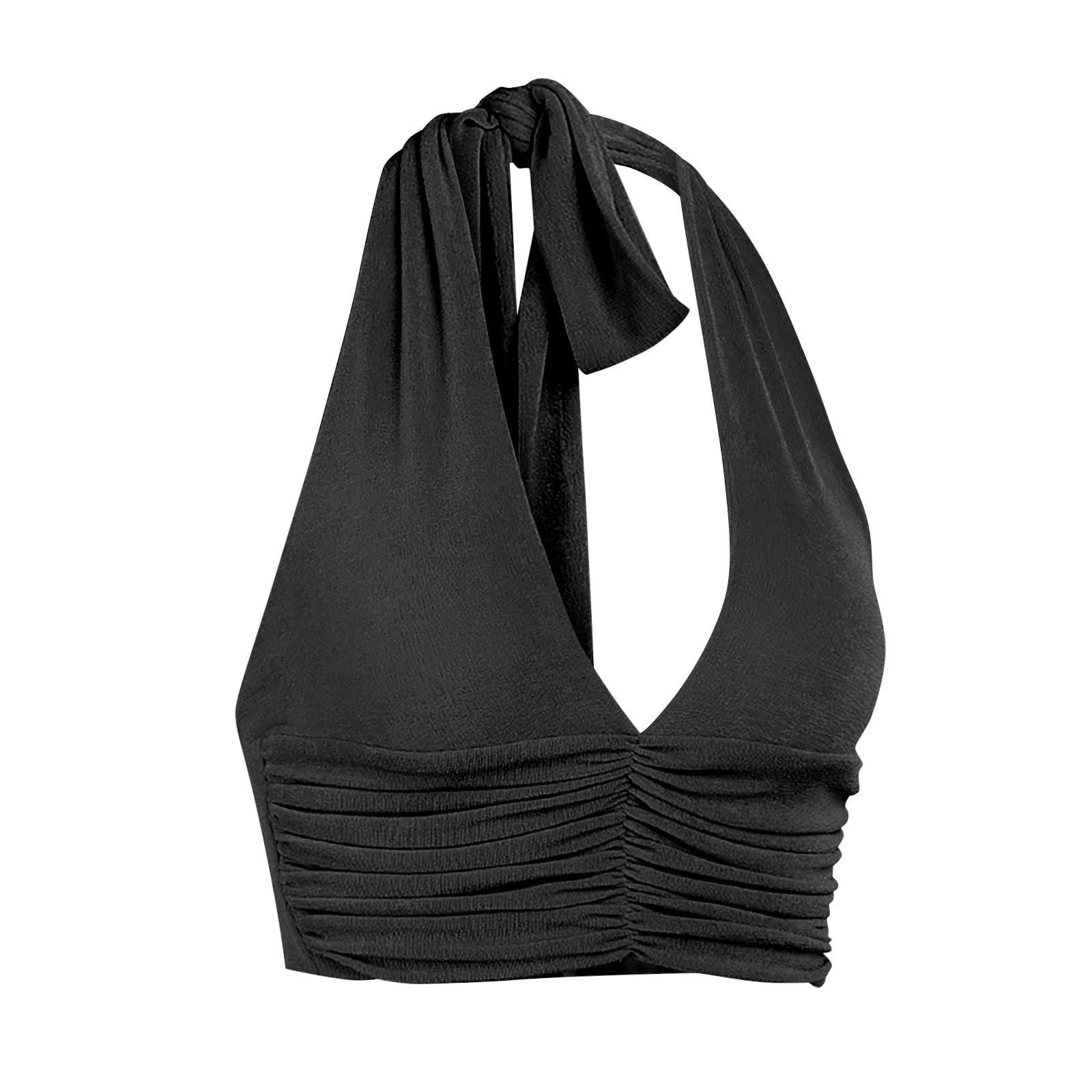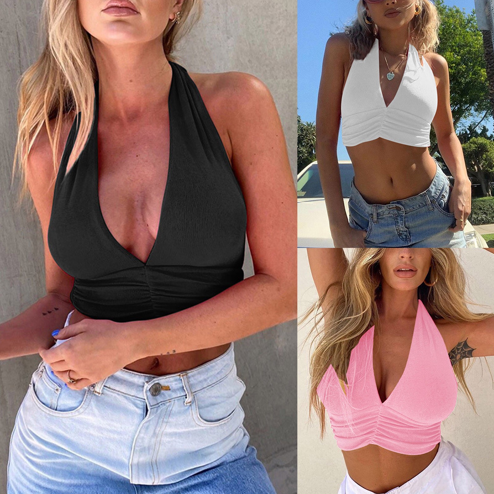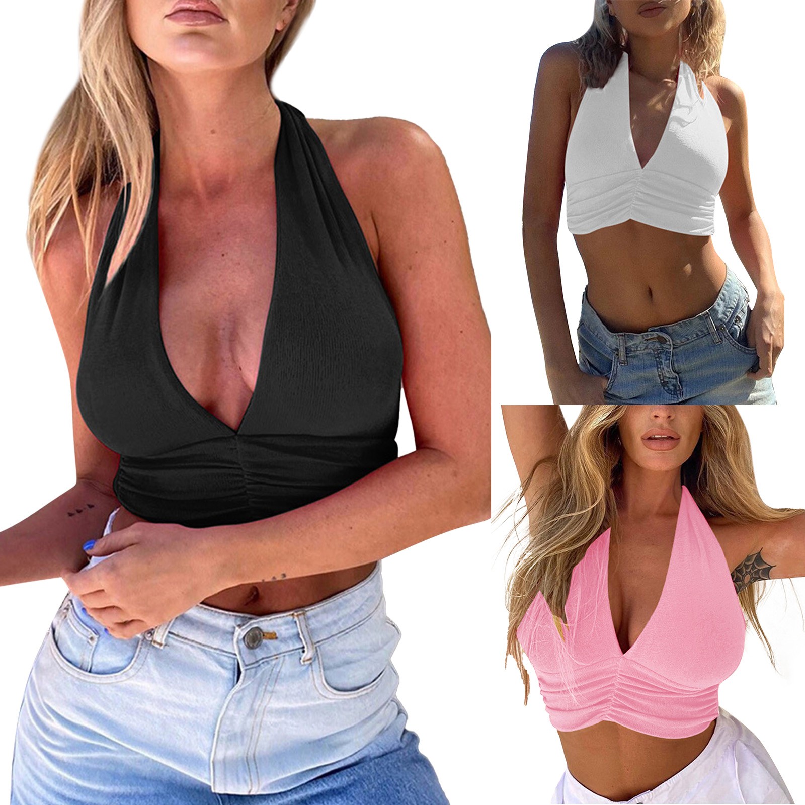 Женский укороченный топ с глубоким v-образным вырезом на шее, модные вечерние топы без рукавов, укороченные топы на бретелях