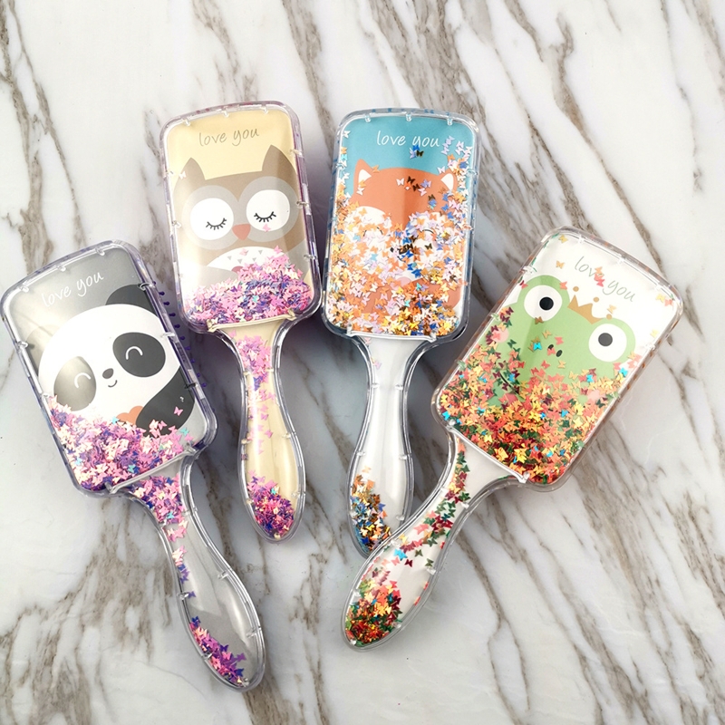 Рисунок с героями мультфильмов; Рисунок с животными из мультфильмов на массажной расческе яркий и интересный; Есть блестки, украшенные блестками, которые привлекают внимание детей и позволяют им испытать удовольствие в процессе расчесывания волос.