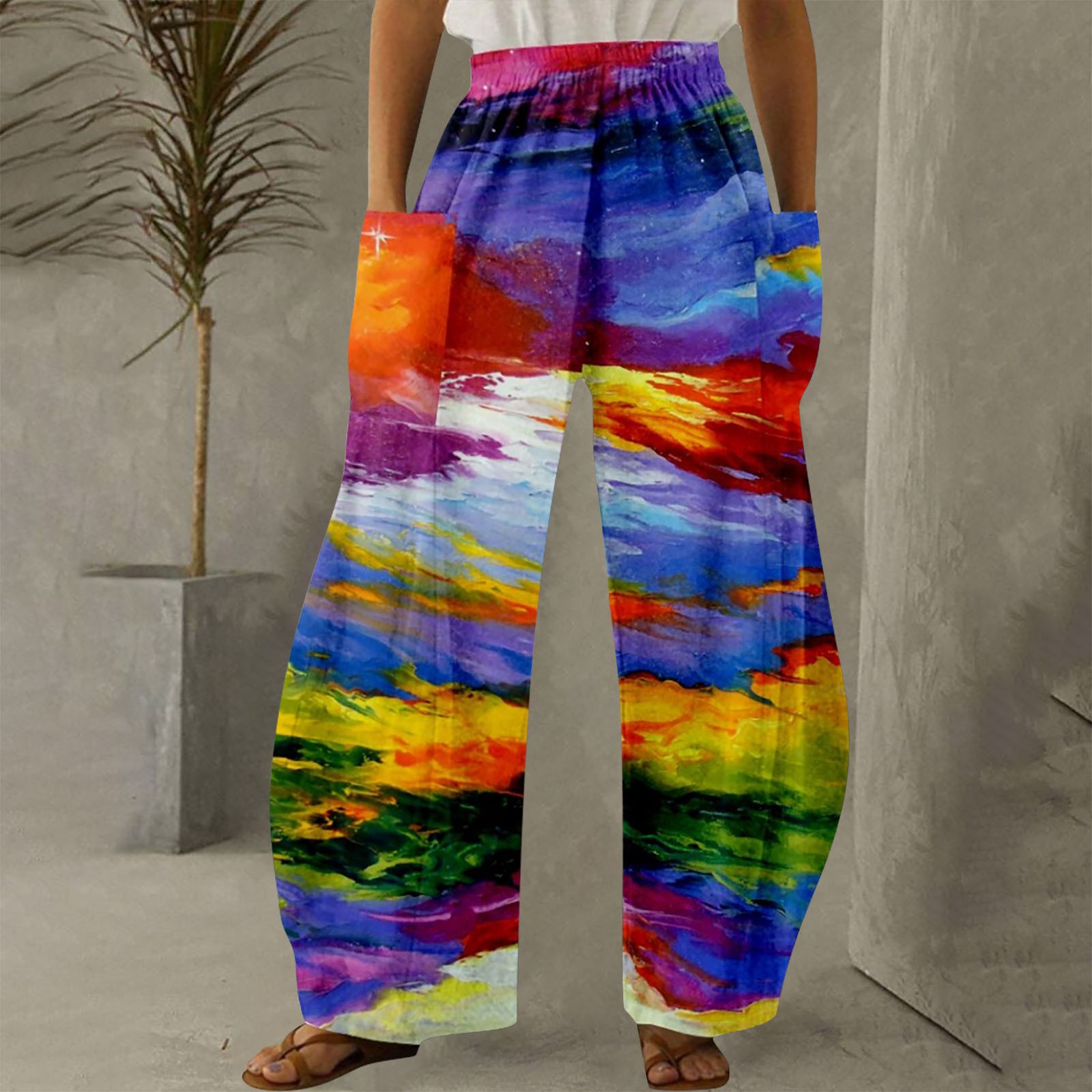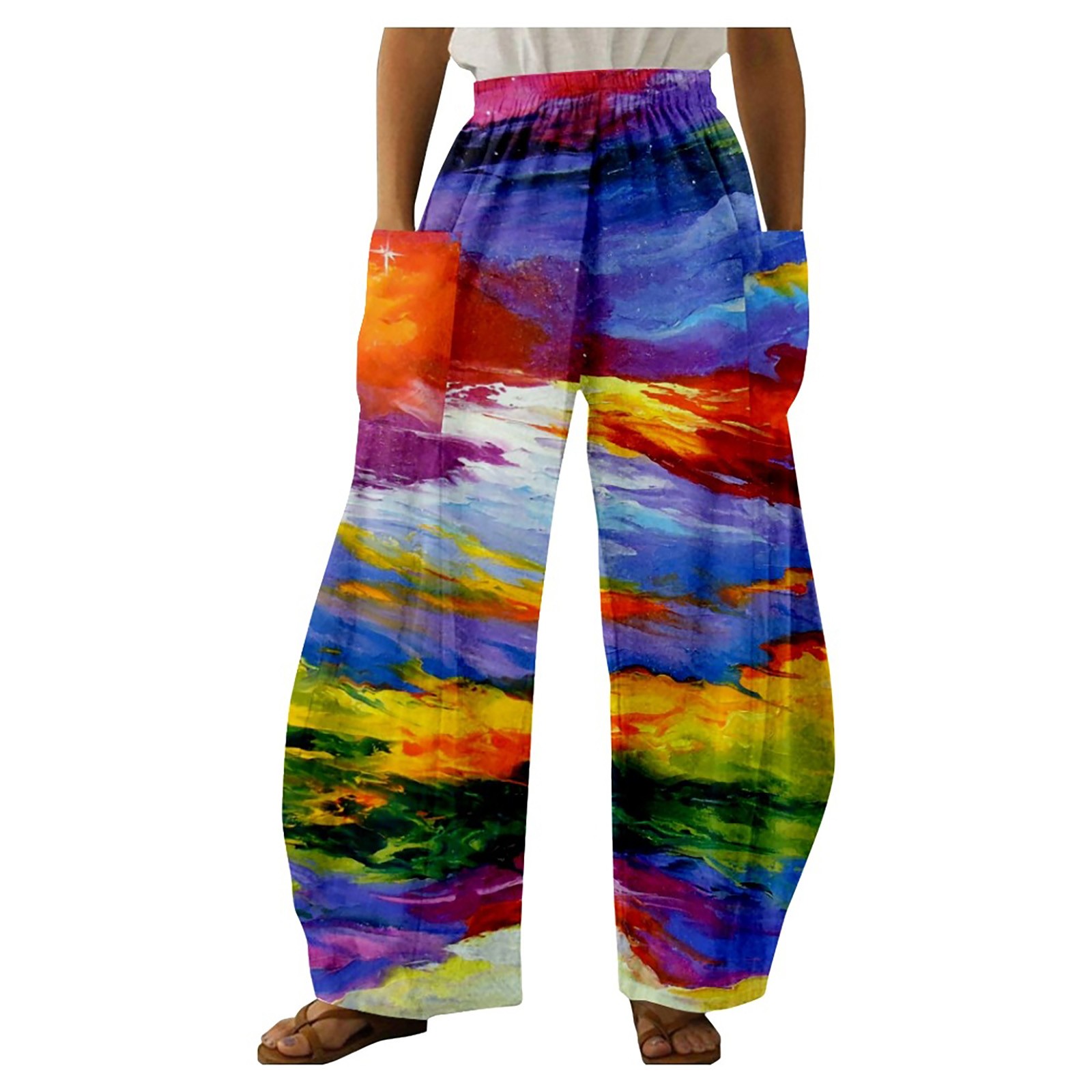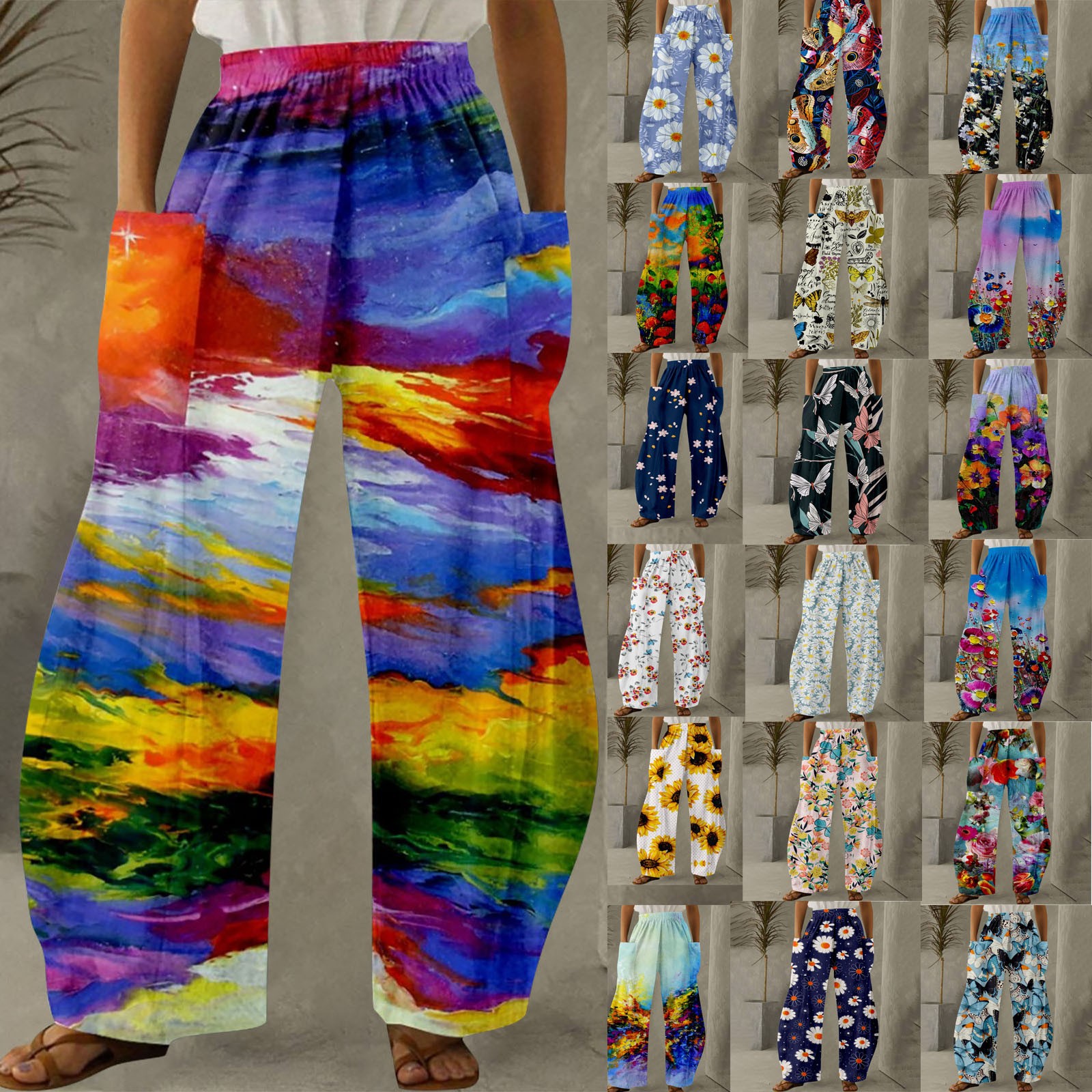 Women Fashion Retro Literature And Art Print Casual Loose Pants Plus Size Loose Pants