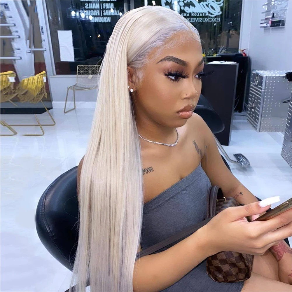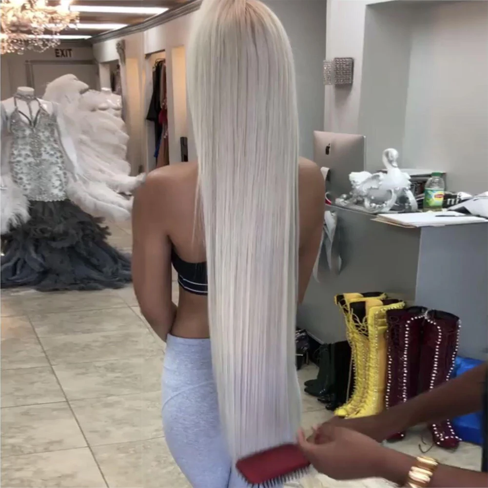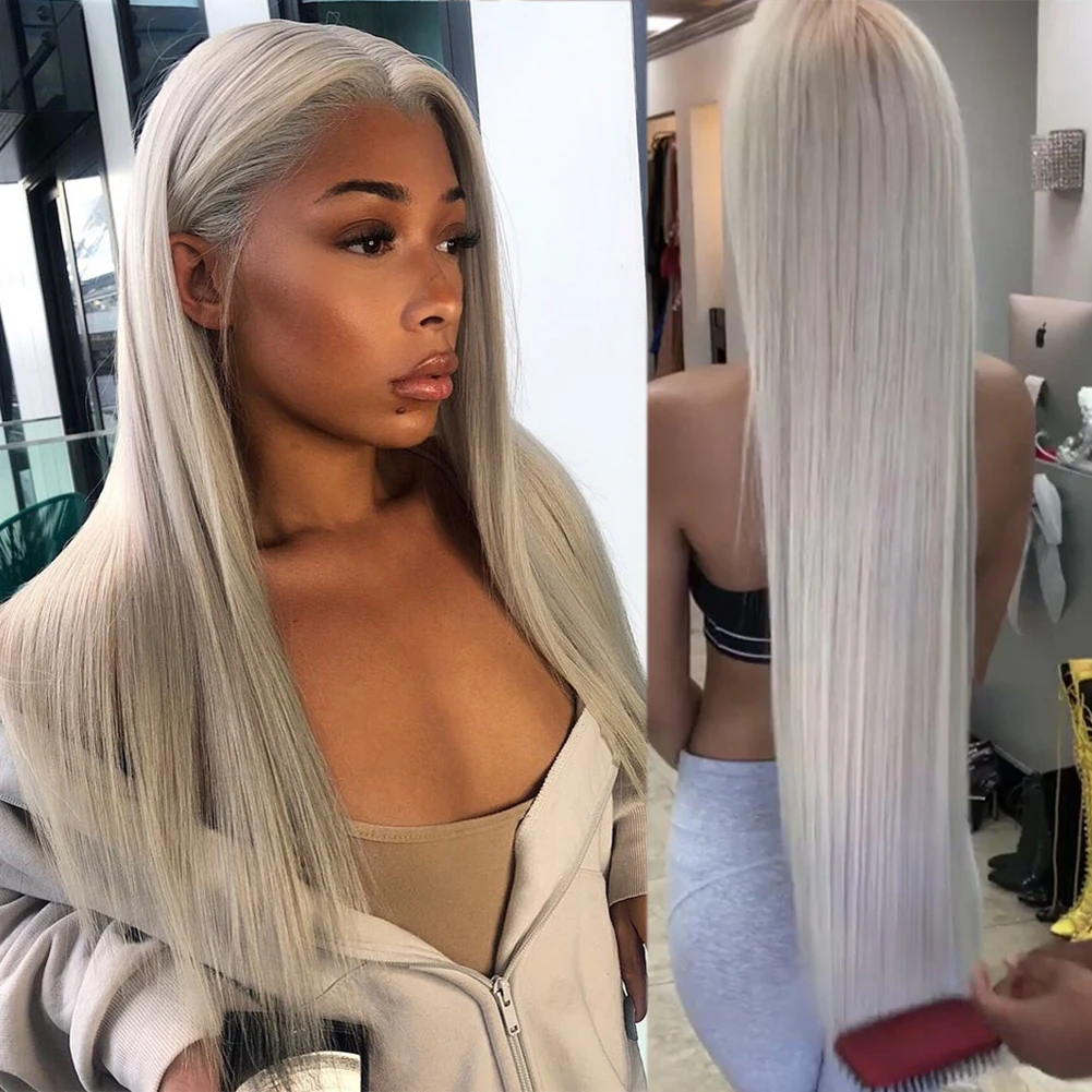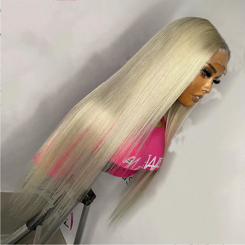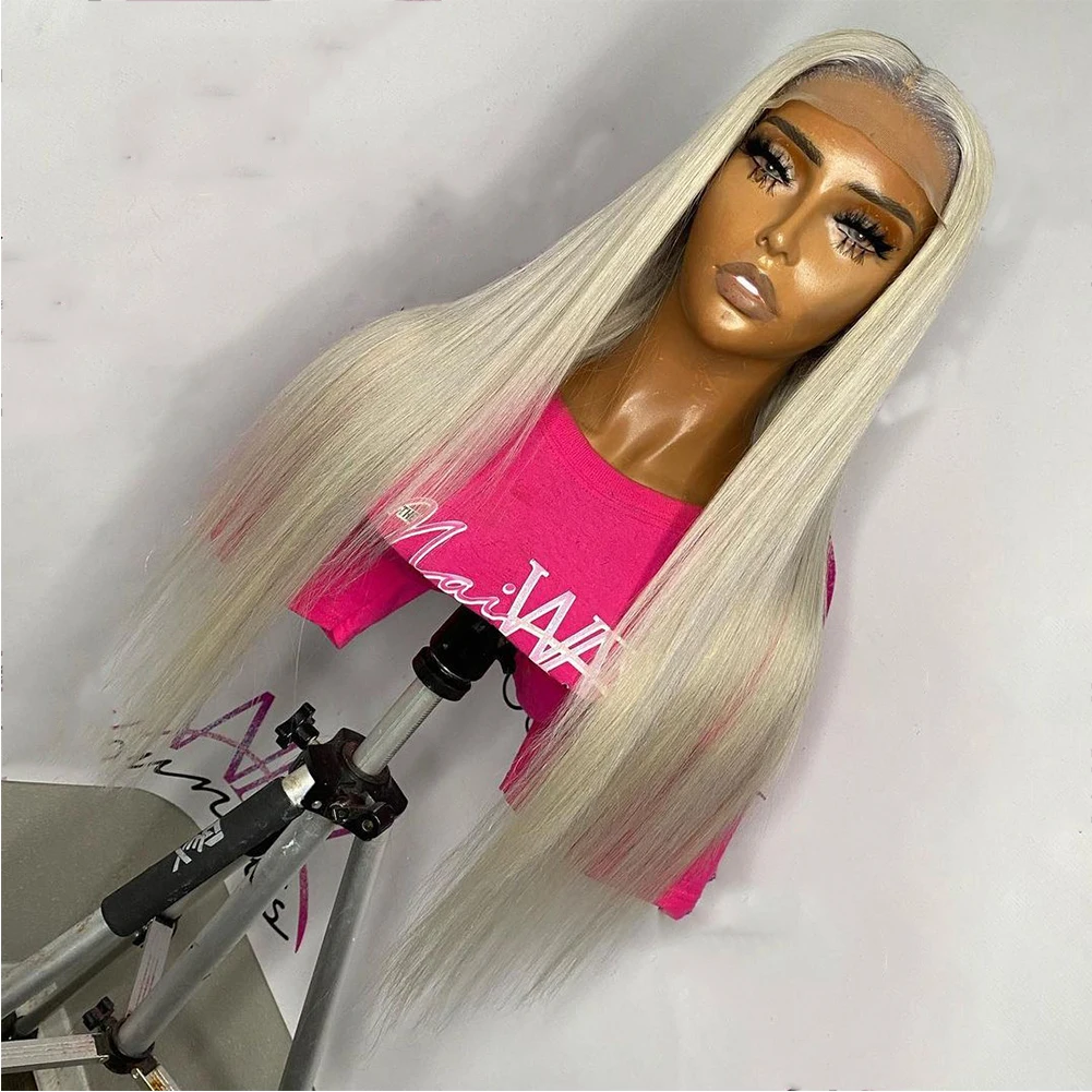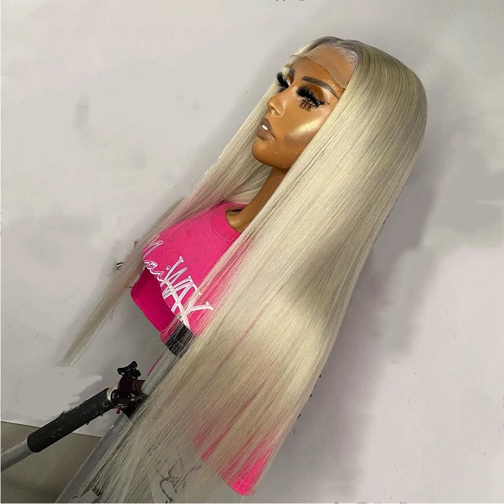 30 "Платиновый Серебряный парик человеческие волосы прямые 13x 6 парик фронта шнурка предварительно сорванные 180% Remy волосы фронта шнурка человеческих волос парики для женщин