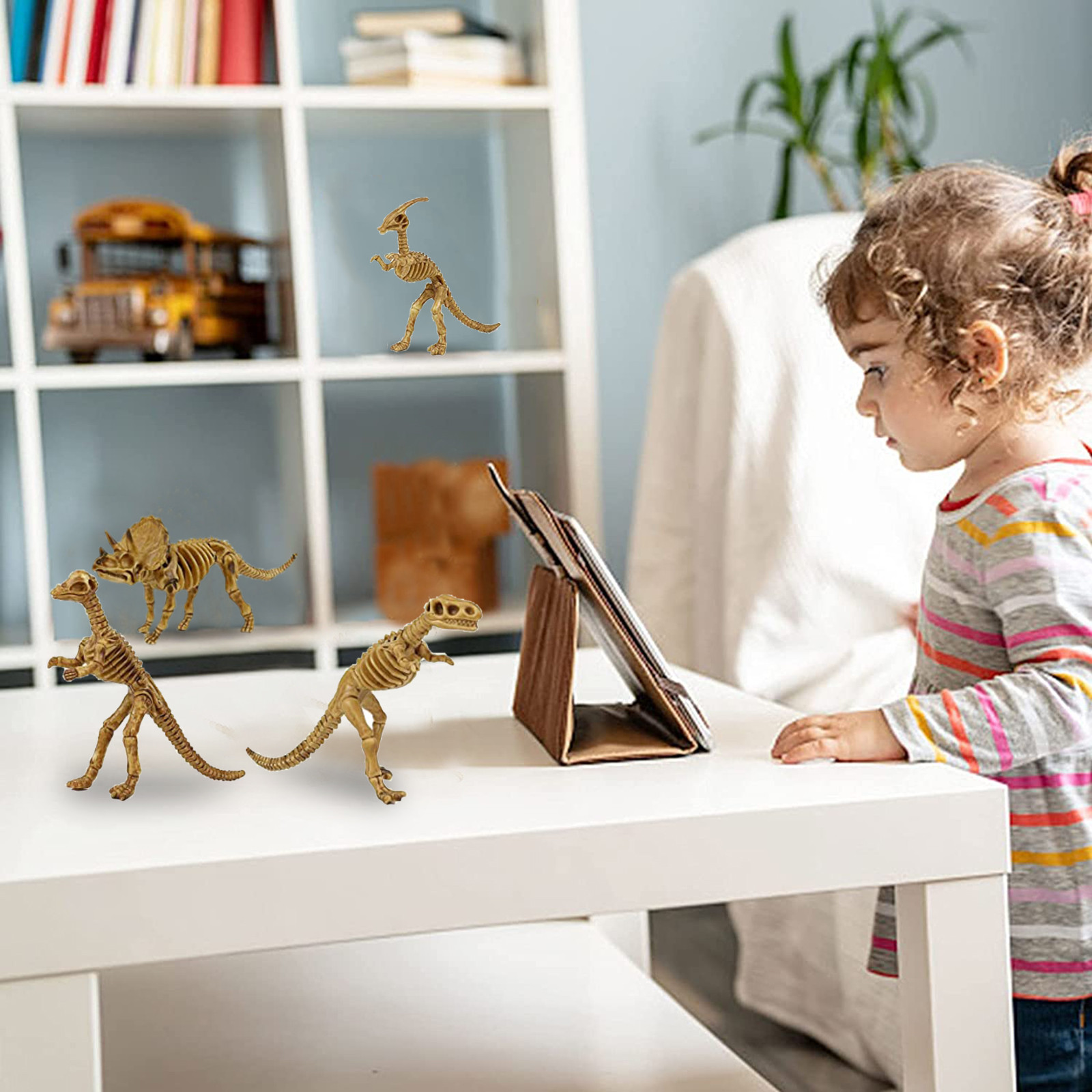 Convenient to Carry:The dinosaur fossil skeleton is about 5.7 inches. These dinosaur toys can be carried anywhere, such as camping, dinosaur-themed birthday parties, schools, and friends’ homes, etc.