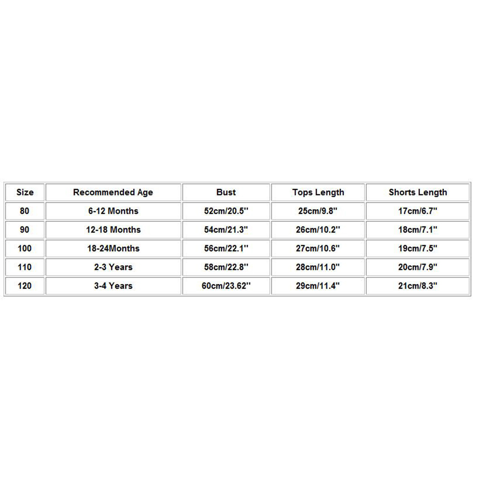 Размеры | Рекомендуемый возраст | Бюст | Длина топа | Длина шорт |