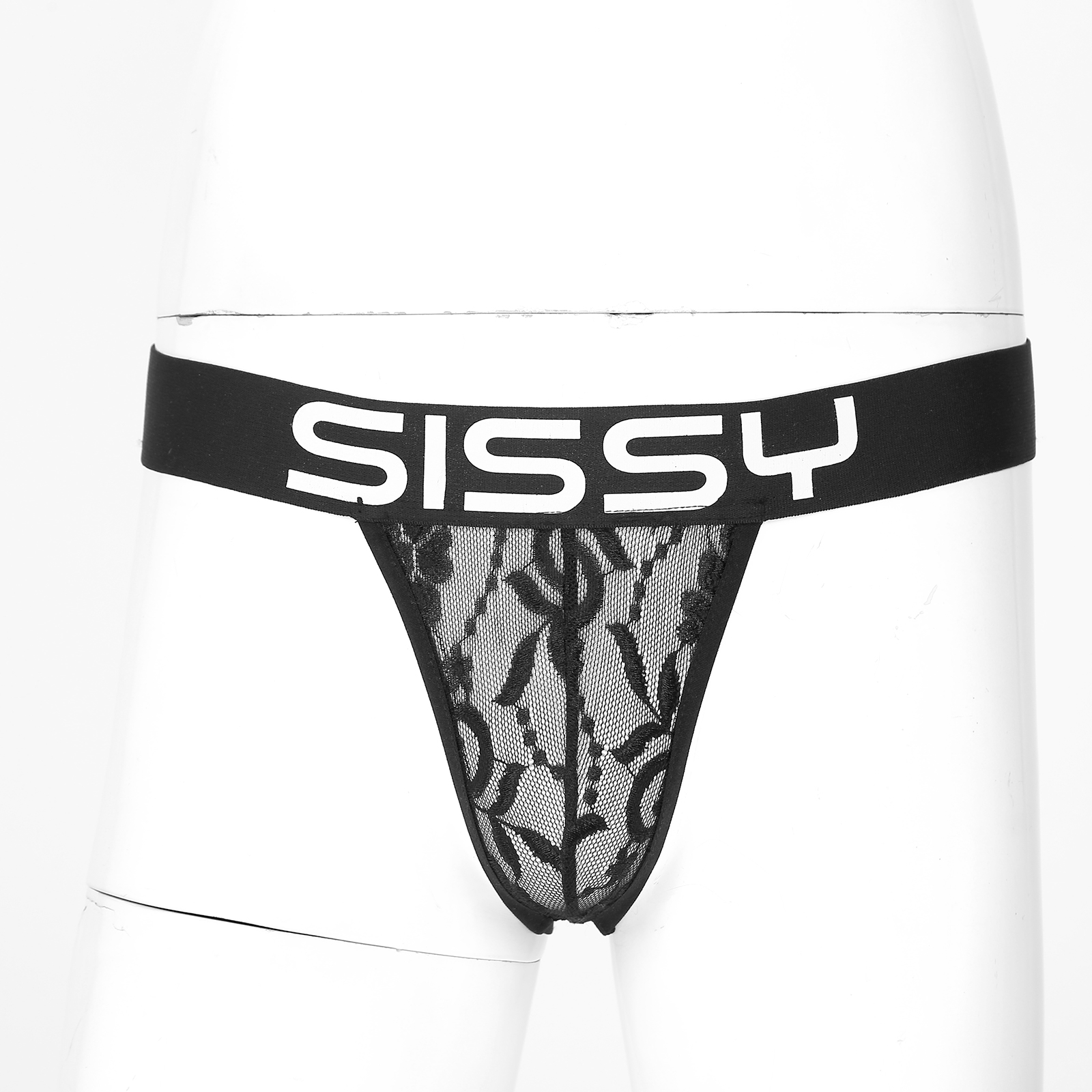 Мужские прозрачные цветочные кружевные трусы нижнее белье Sissy открытые стринги с буквенным принтом широкий эластичный пояс стринги Бандаж Нижнее Белье