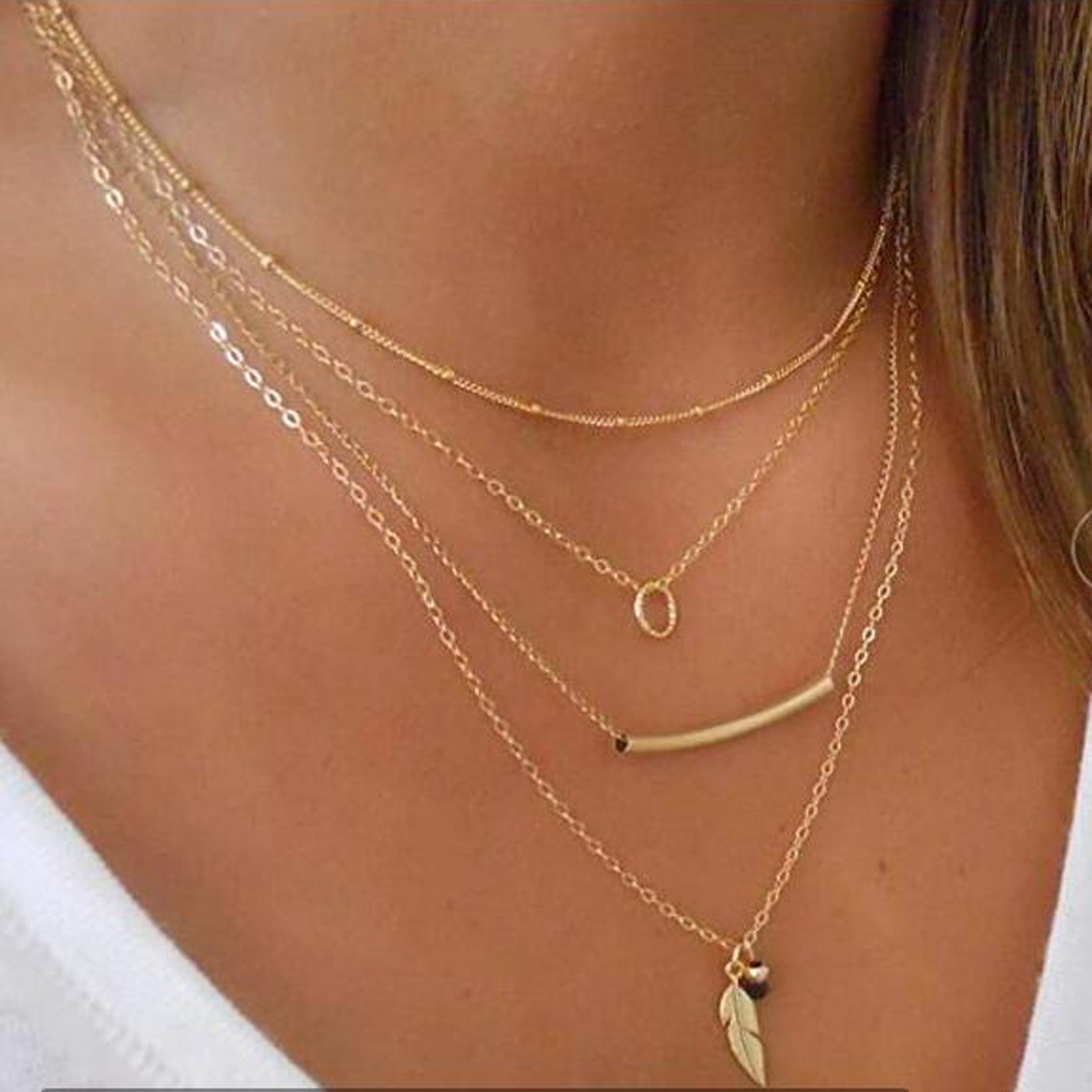 Женское Ожерелье богемное многослойное ожерелье с подвеской в виде листа
