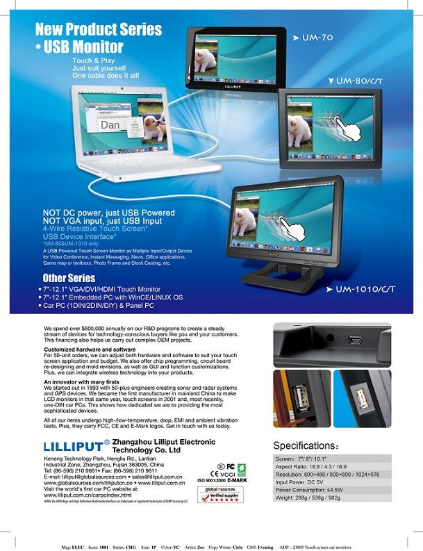 UM-70 имеет очень полезные и интересные приложения: уменьшение кабеля подключения монитора, отображение окна обмена мгновенными сообщениями, панель инструментов программы отображения, цифровая фоторамка, обзор фондового рынка в реальном времени, отображение карты игры. Благодаря своей светильник вес и только один USB кабель, UM-70-идеальный компаньон для портативных компьютеров и ноутбуков, а не ограничена мощность во время путешествий.
