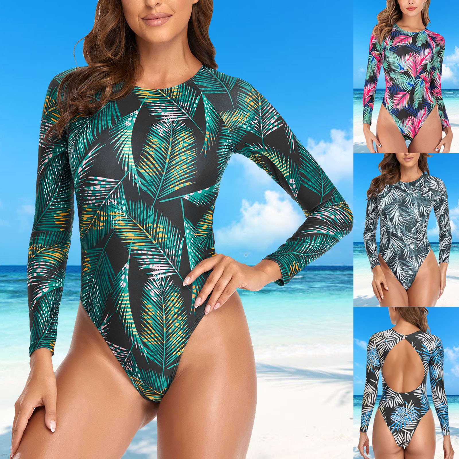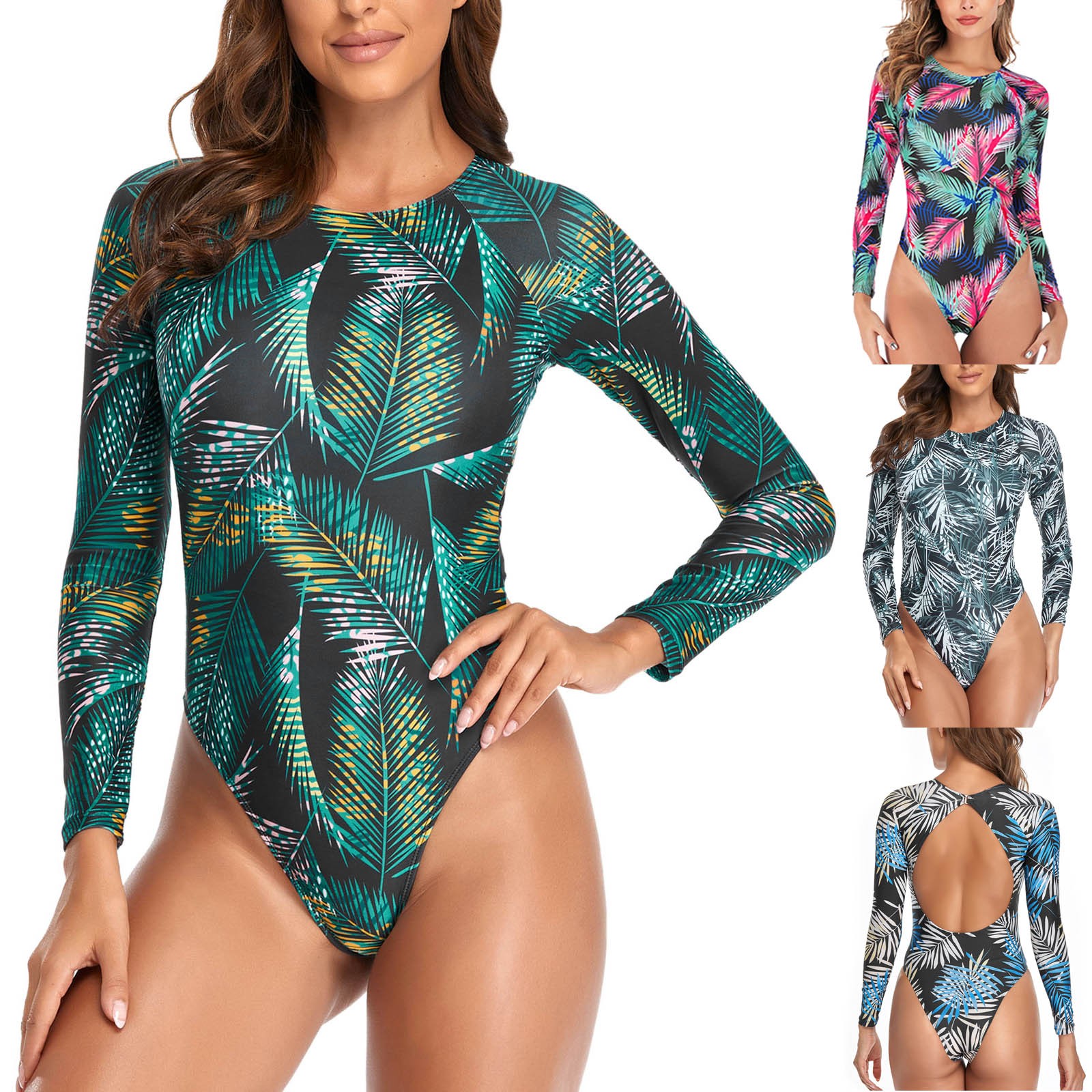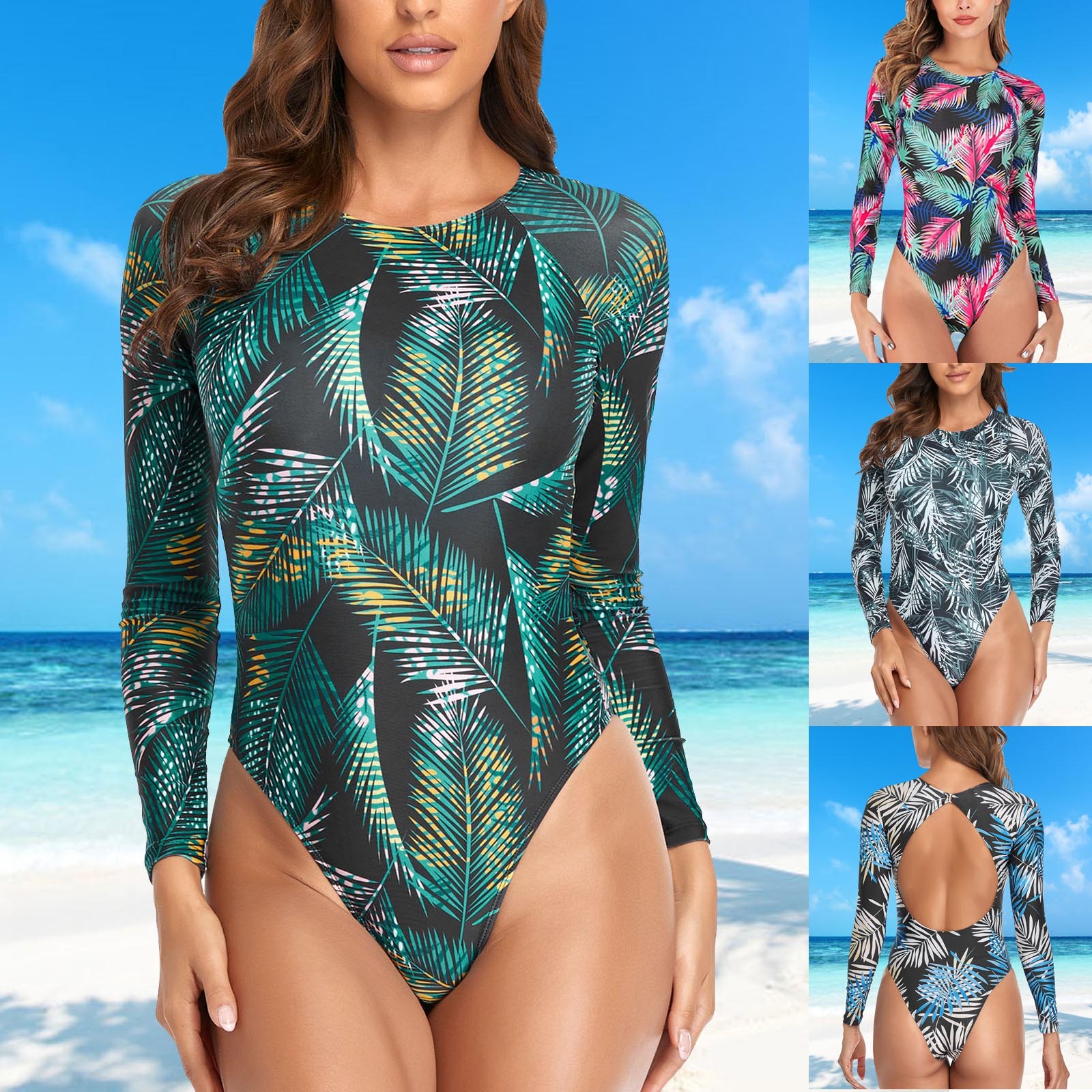 Женский купальный костюм с длинным рукавом и принтом, солнцезащитный костюм для серфинга, купальный костюм
