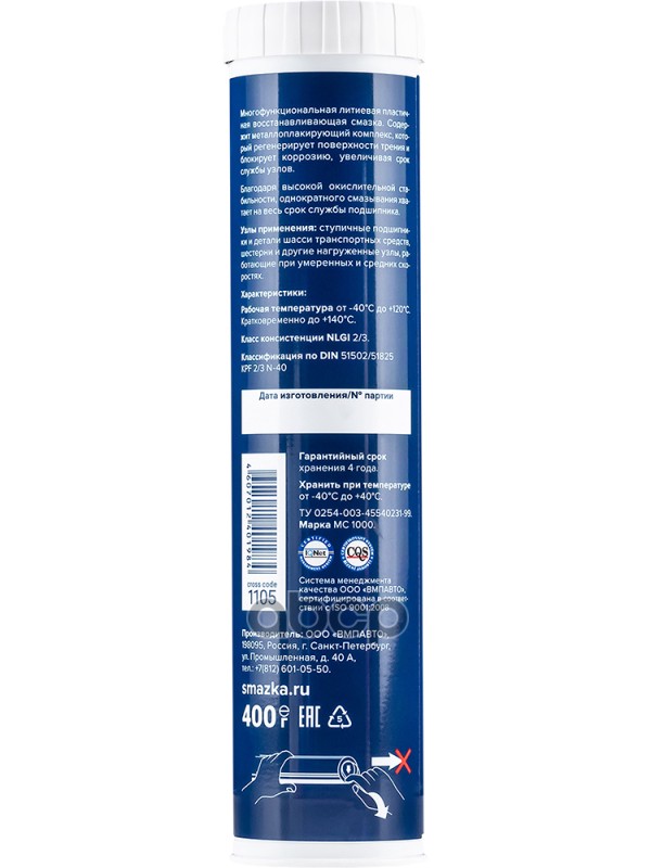 1105 Смазка Мс 1000 Многофункциональная, 400г Картридж (20шт/Кор)