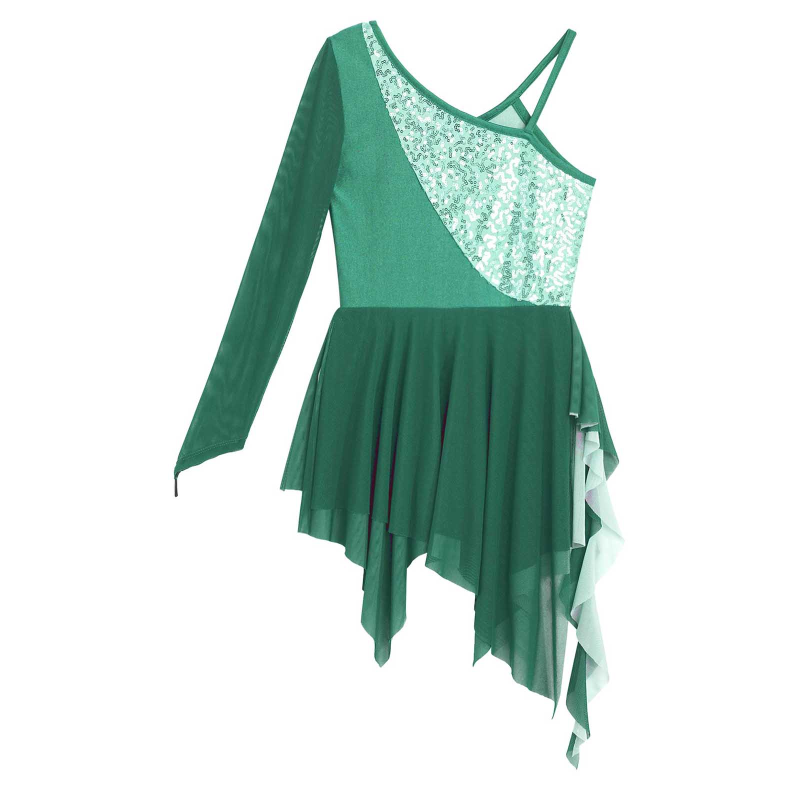 Платье с одним рукавом и одним плечом, бретельками на тонких бретельках, украшенным блестящими блестками.