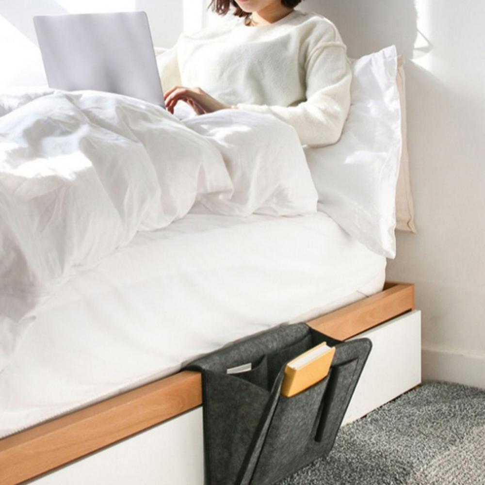 Просто вставьте прикроватный мешок для хранения между матрасом и прикроватной тумбочкой, диваном, столом и так далее.