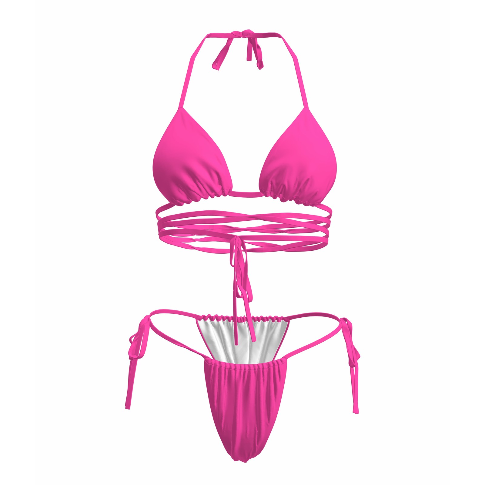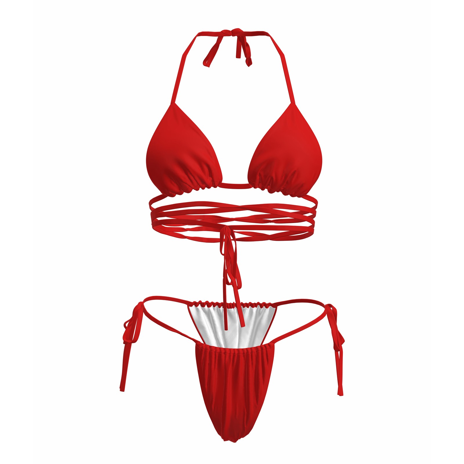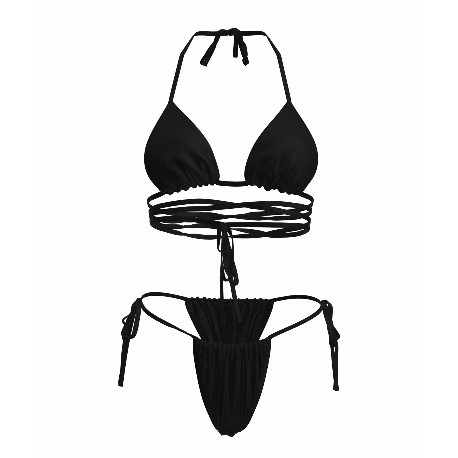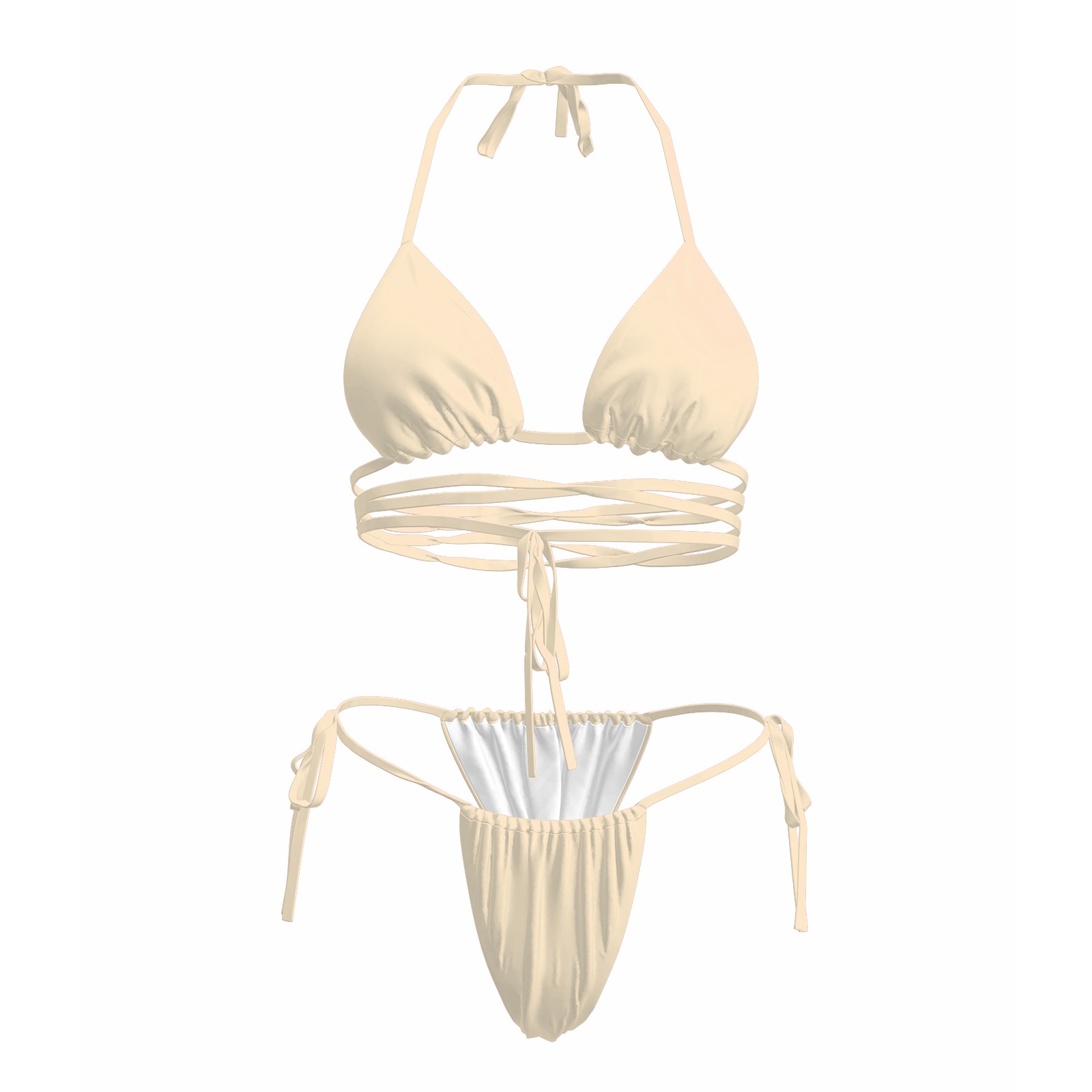Women'S Split Swimsuit Simple Solid Color Bandage Sexy 2 Piece Mini Bikini